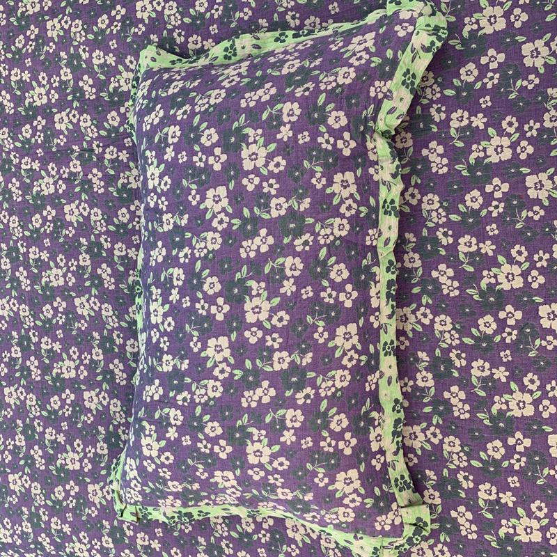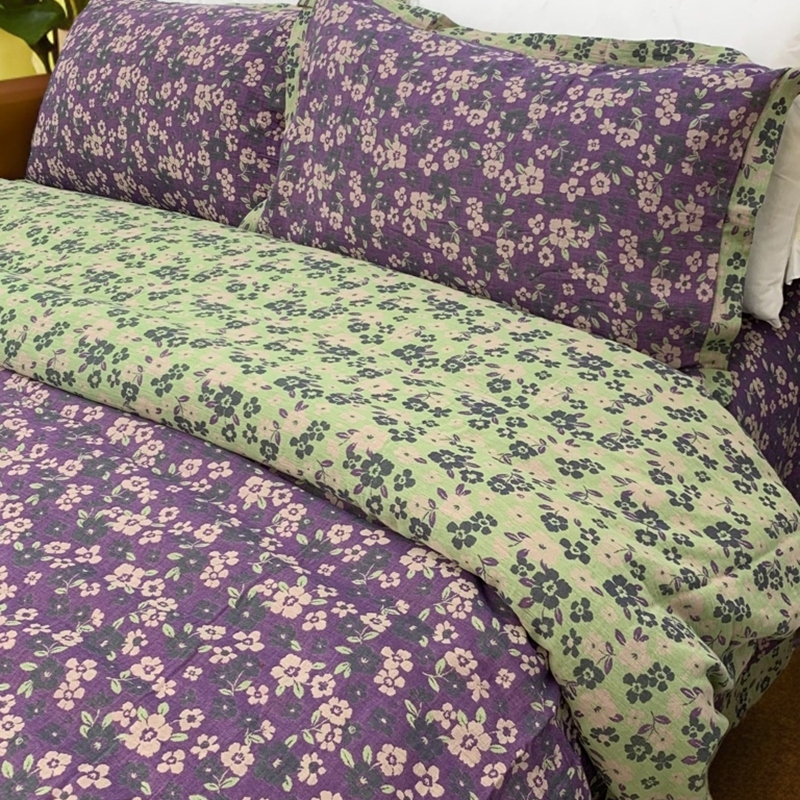 鲁爱家纺供货 2025新款全棉色织双层纱花边款四件套 花间物语-紫