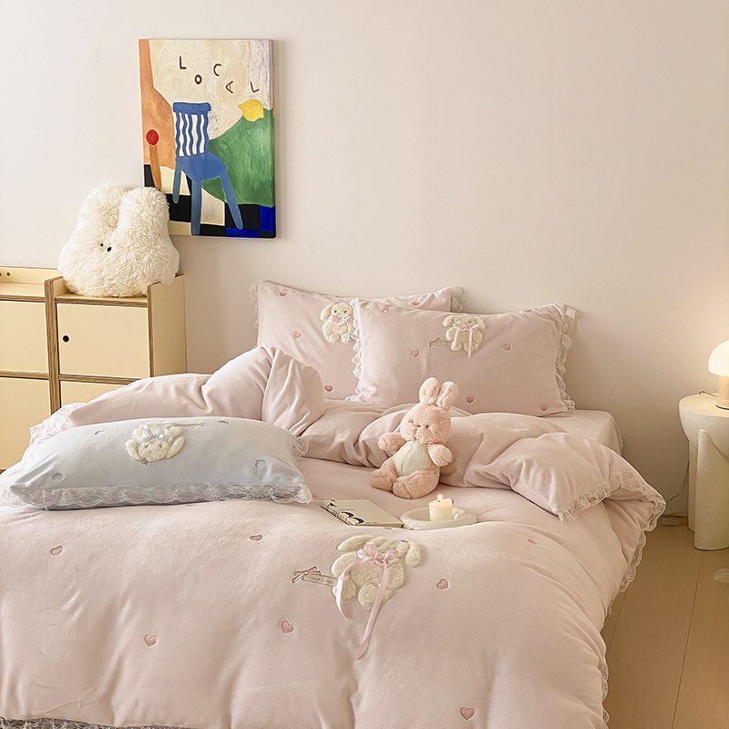 (总)MIU缪家居 2025新款牛奶绒四件套-翩翩起舞,翩翩起舞-粉,翩翩起舞-蓝