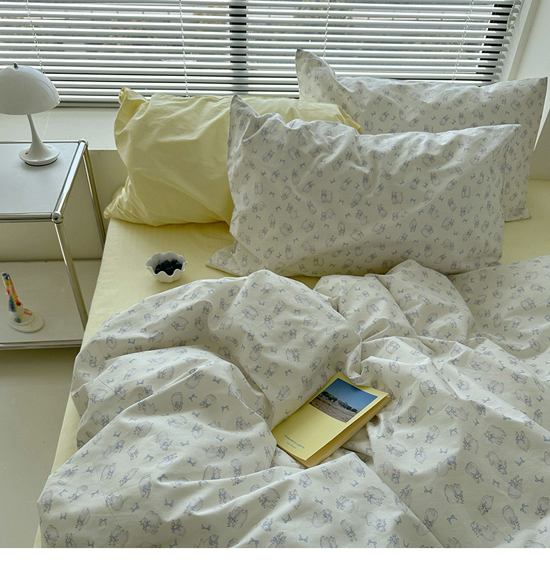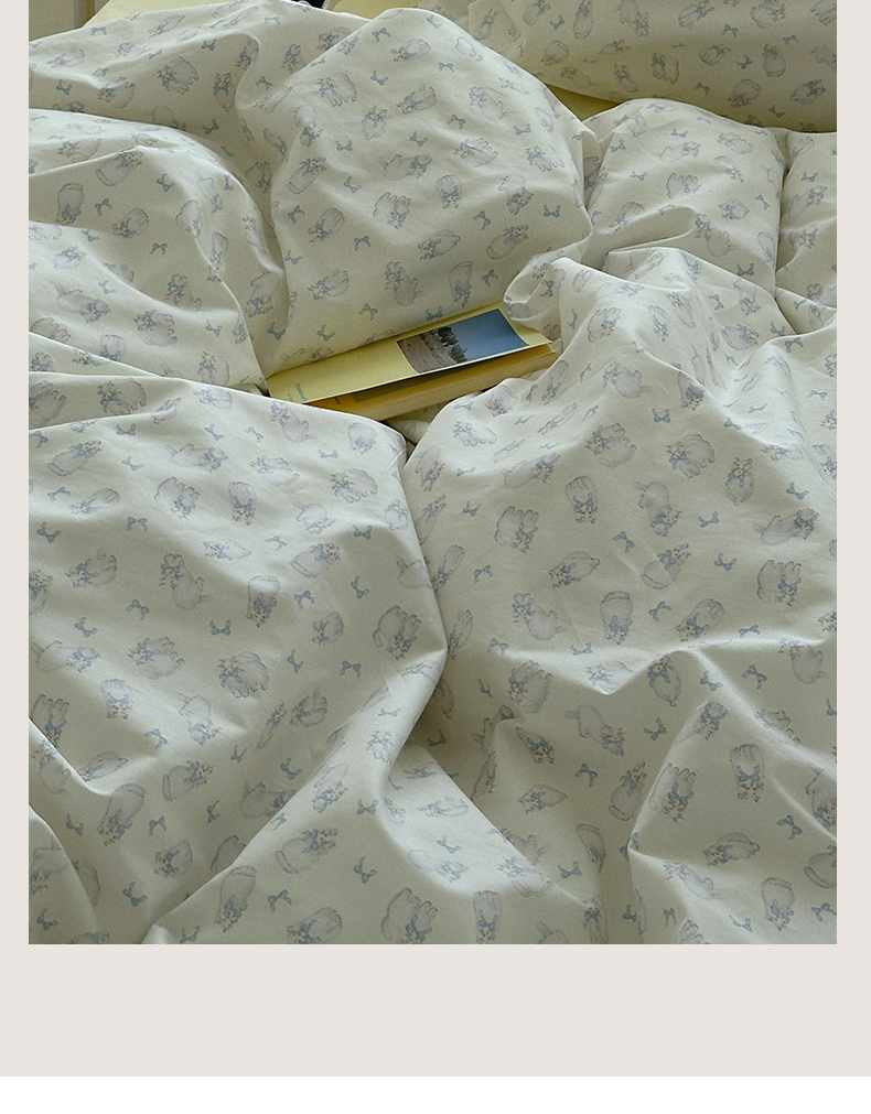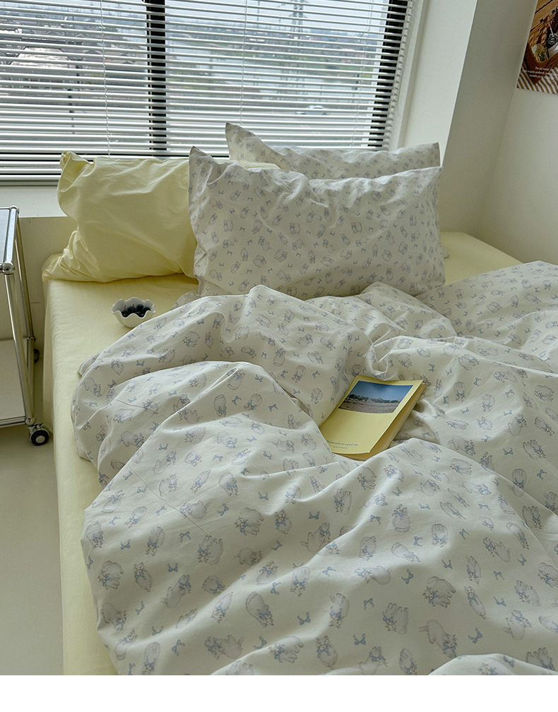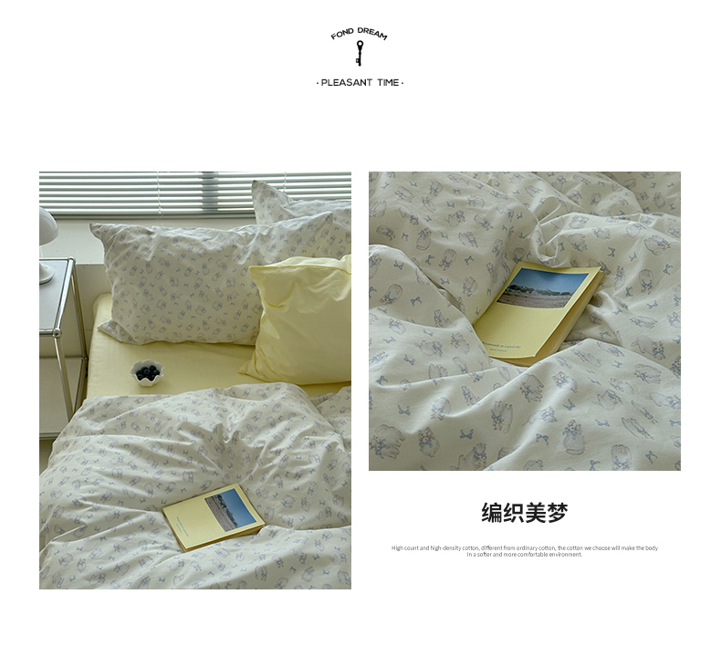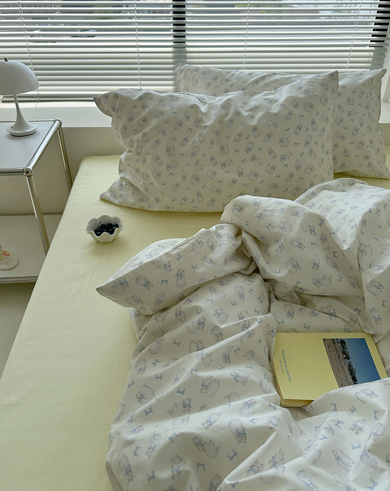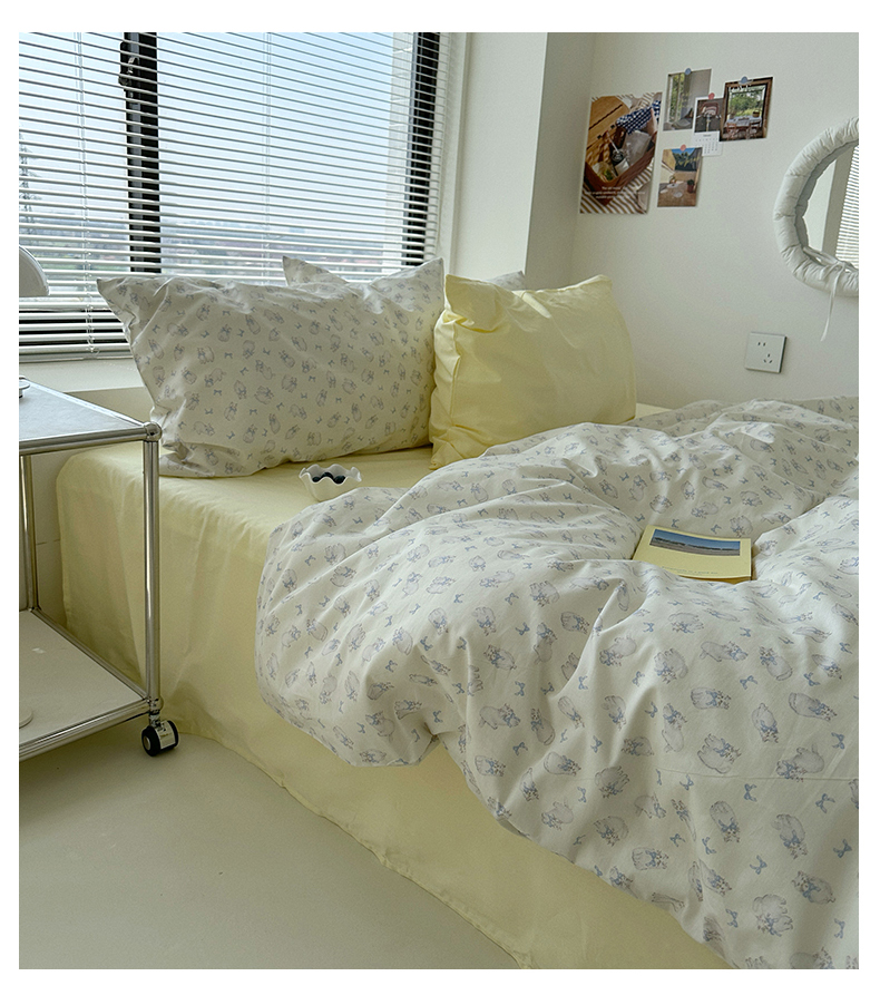 (总)尺素 全棉40支喷气13372韩国ins设计师四件套,花舞,篱落粉,篱落黄,落英,派对,童趣,涂鸦,小粉兔,雪地熊