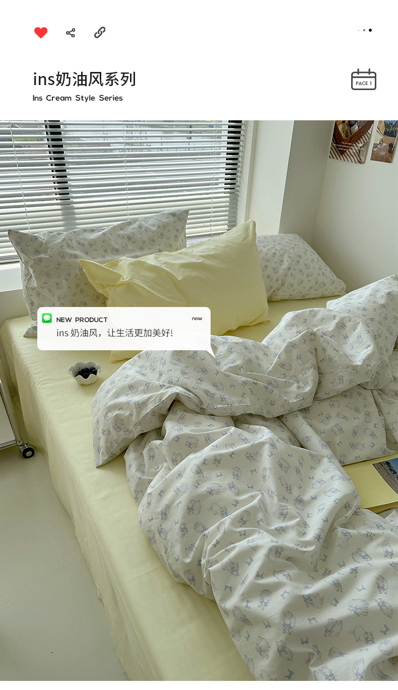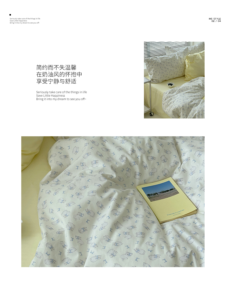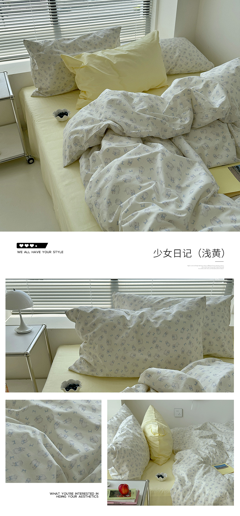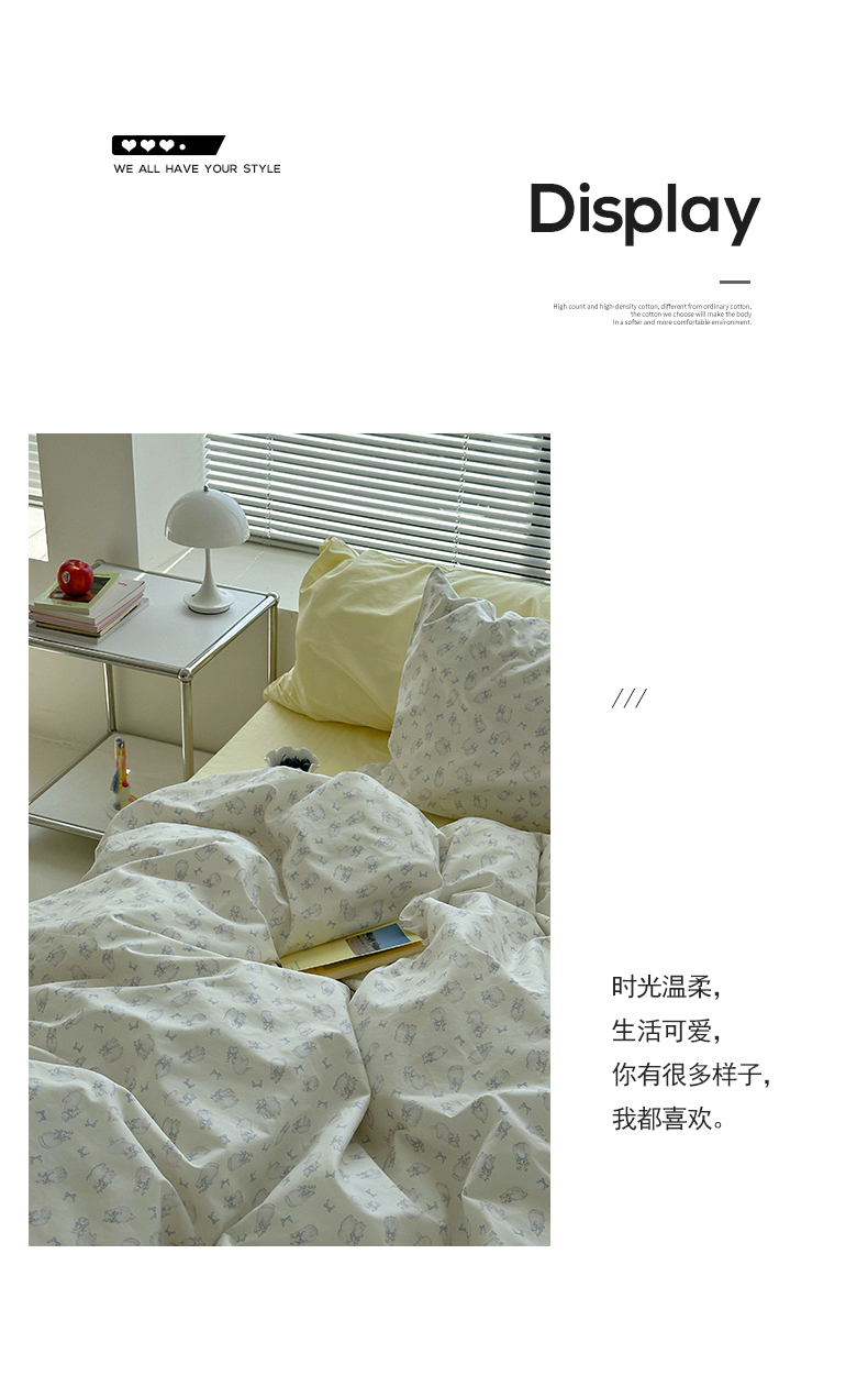 (总)尺素 全棉40支喷气13372韩国ins设计师四件套,花舞,篱落粉,篱落黄,落英,派对,童趣,涂鸦,小粉兔,雪地熊