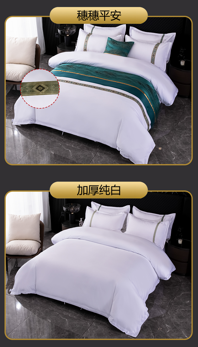 当前位置: 91家纺网 > 商品网购 > 床品套件 > 四件套 > 普通磨毛四件套 > 中乾酒店布草工厂店 2024新款140克织带款酒店加厚磨毛四件套 翡翠鸿图
