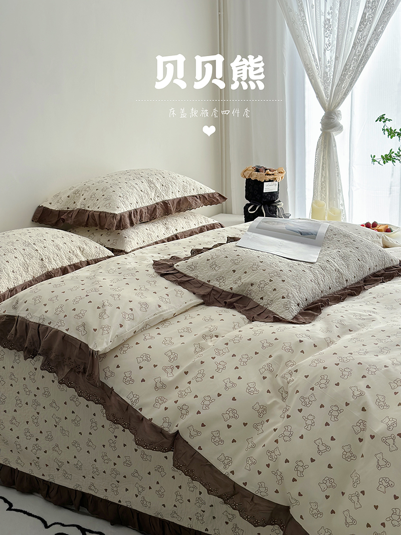 佰织鑫家居 2026新款全棉法式砂洗棉花床盖款被套四件套 赫本