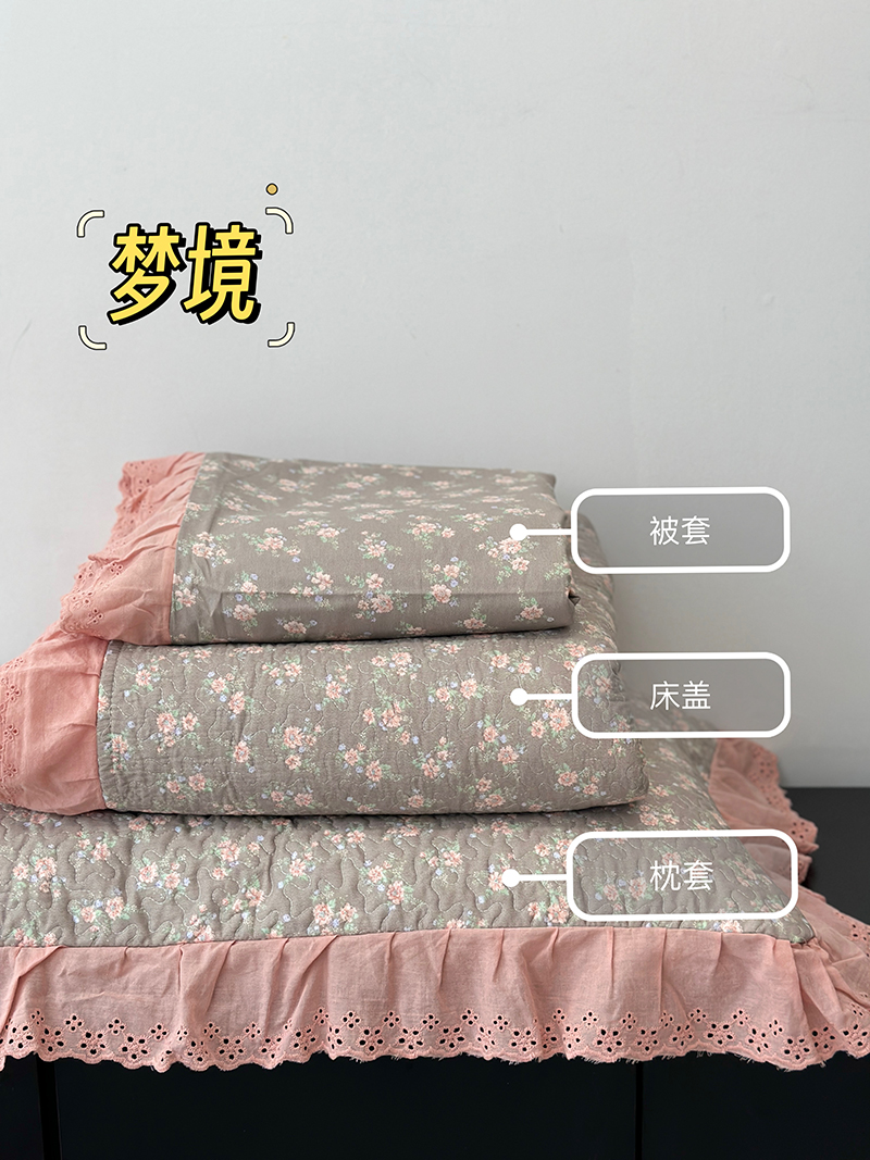 (总)佰织鑫家居 2026新款韩系花边款全棉砂洗多功能四件套夏被四件套(会员-5),洛伊,南山雏菊,思意绵绵,宛如初见,小柔花夕,悠悠花园