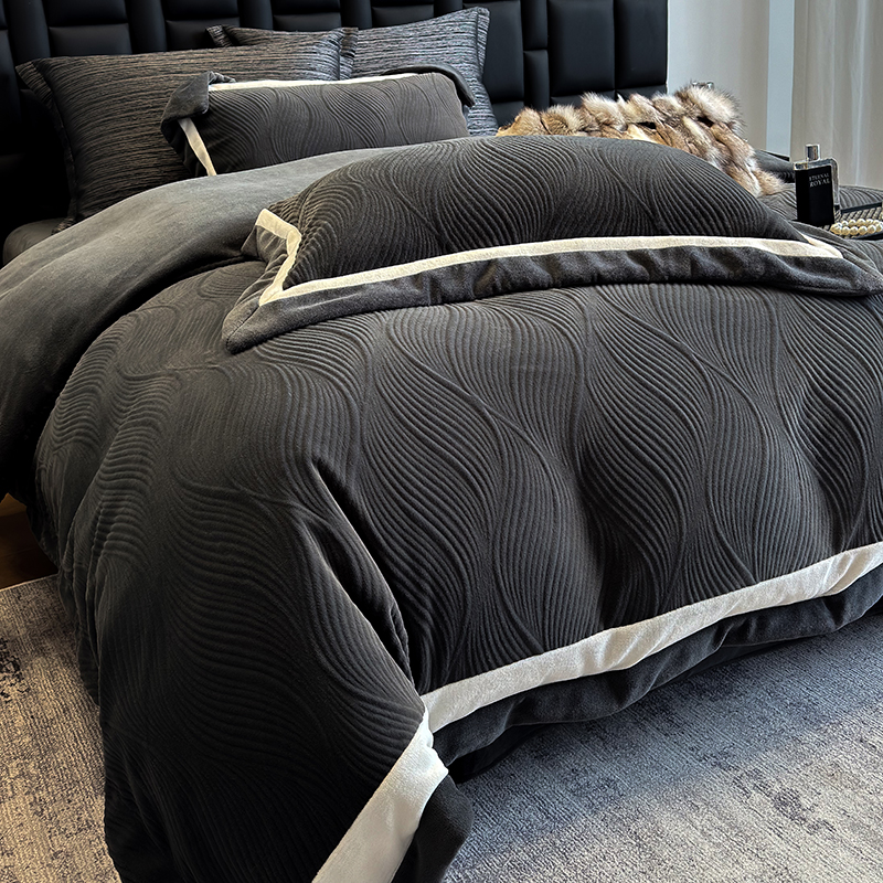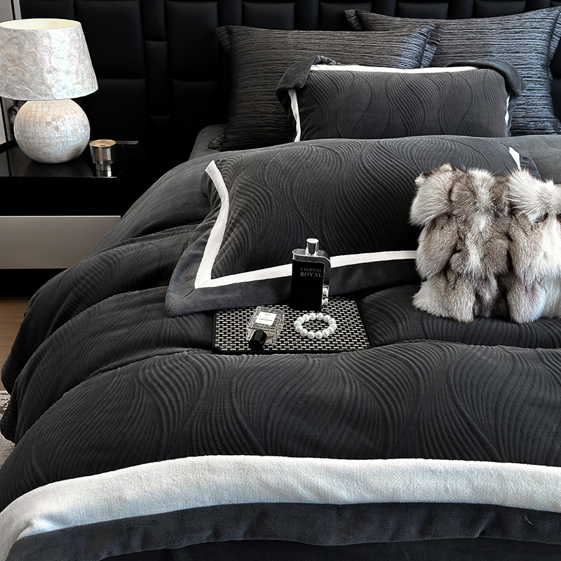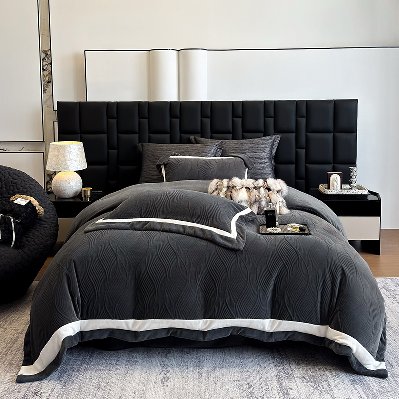 商品名称:若未家居 LOVEWE HOUSE 2025秋冬260克AB版双拼雕花全消光牛奶绒套件--布拉格 布拉格-爵士灰