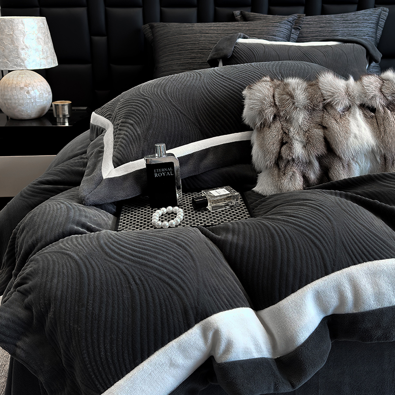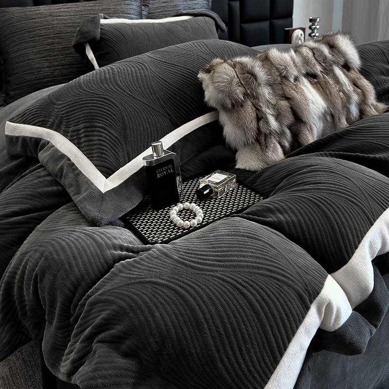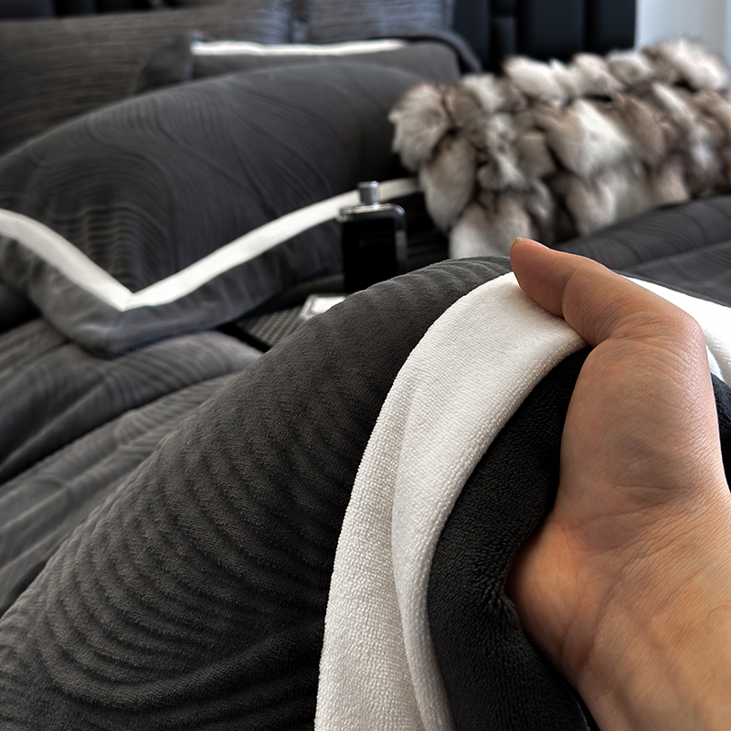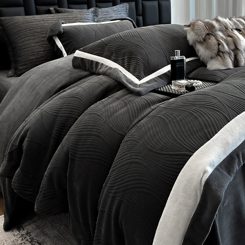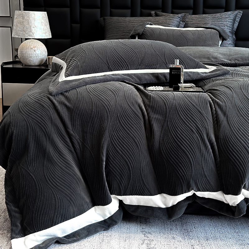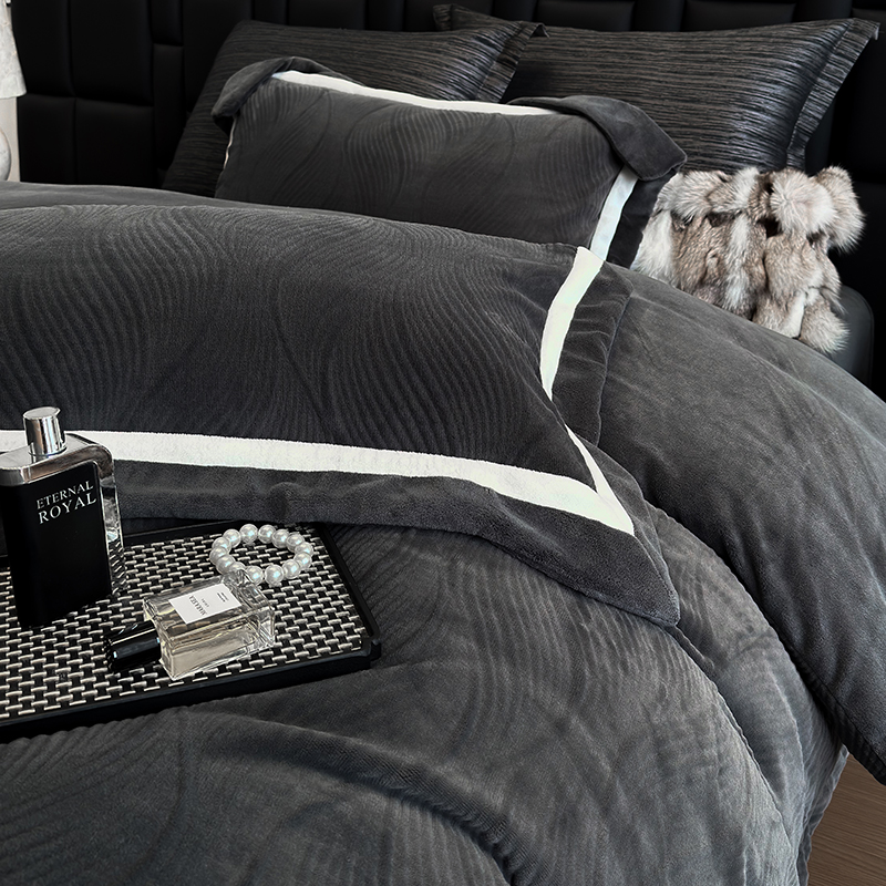 若未家居 LOVEWE HOUSE 2025秋冬260克AB版双拼雕花全消光牛奶绒套件--布拉格 布拉格-爵士灰