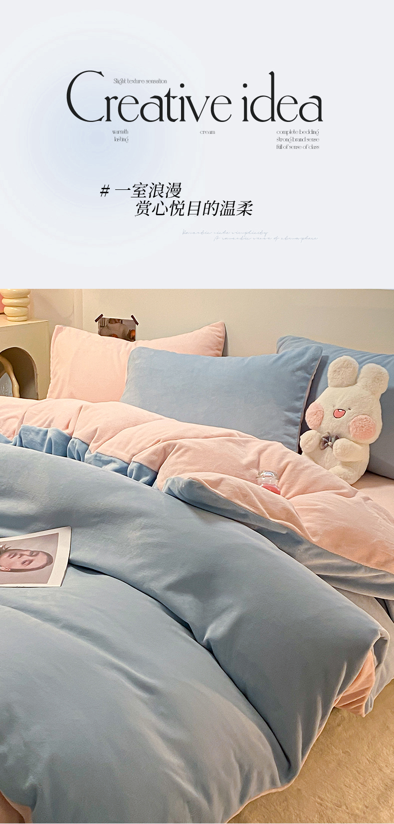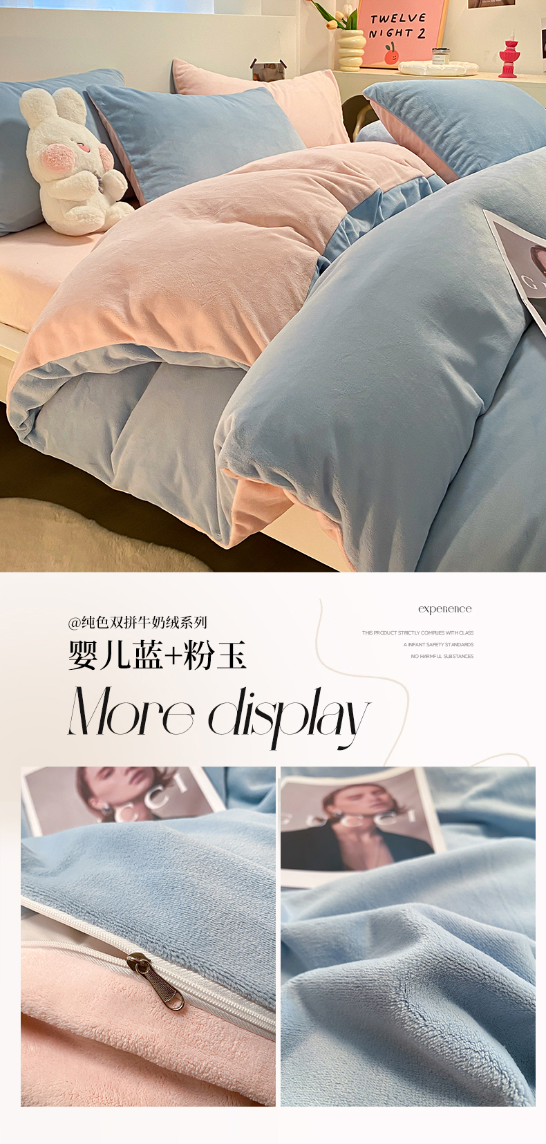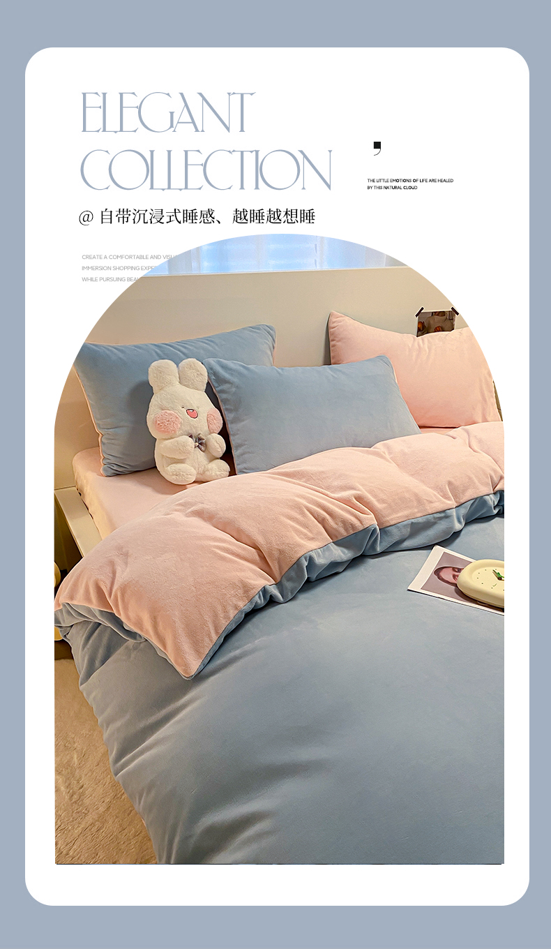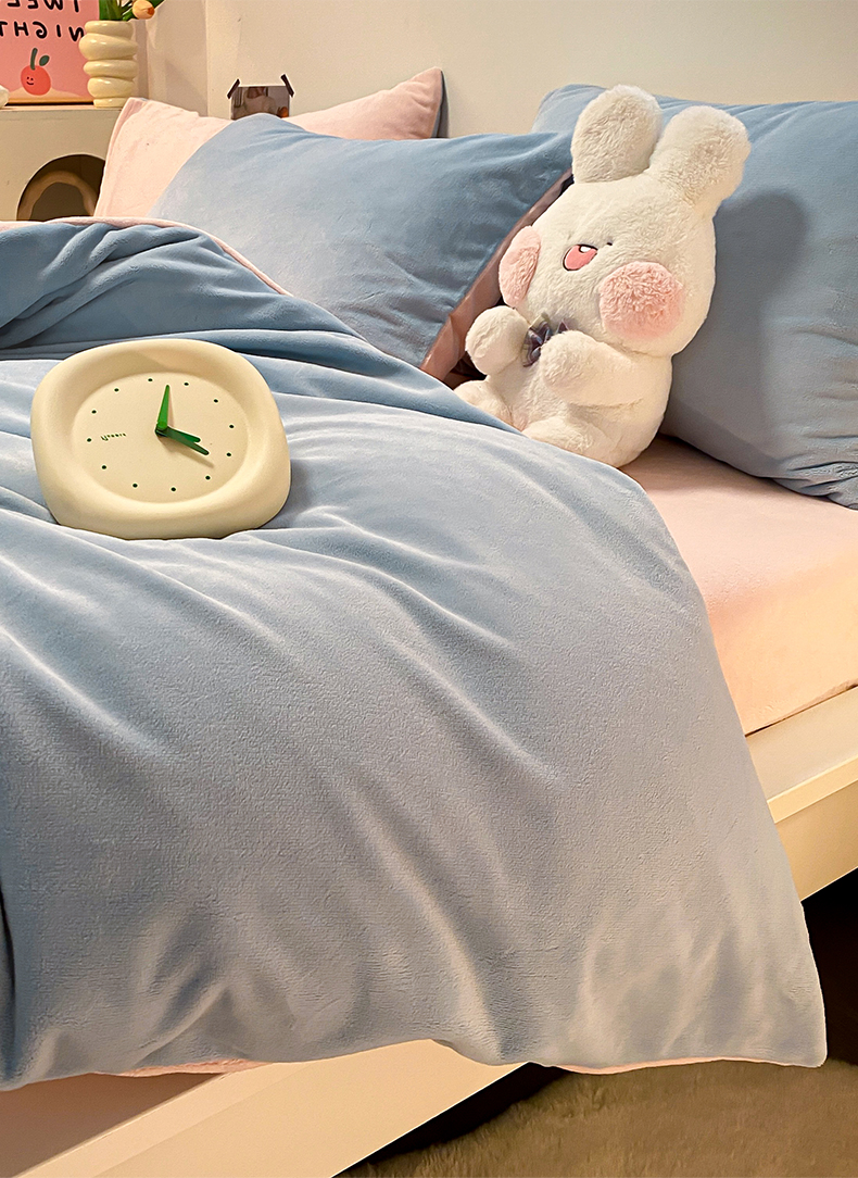 当前位置: 91家纺网 > 商品网购 > 床品套件 > 四件套 > 牛奶绒四件套 > (买家秀爆款不断货)A类母婴级简约纯色双拼牛奶绒四件套提花绒珊瑚绒四件套雪花绒四件套纯色牛奶绒四件套 婴儿蓝+粉玉