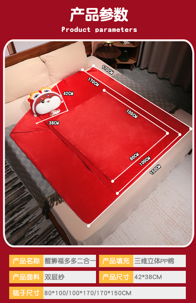 商品名称:(总)仟亿莱 2025新款醒狮福多多二合一抱枕毯