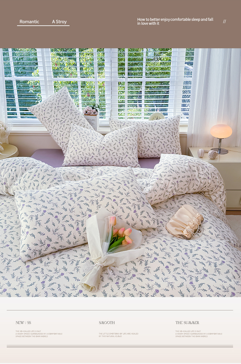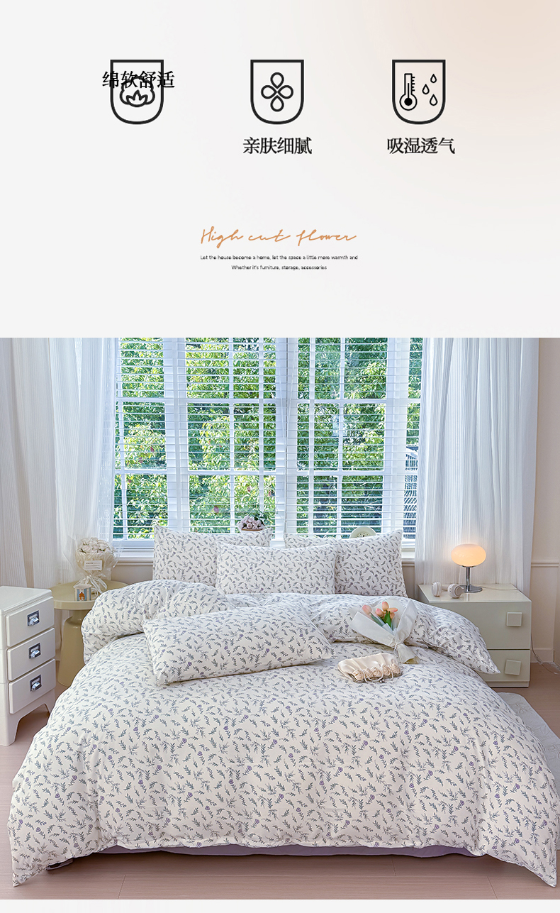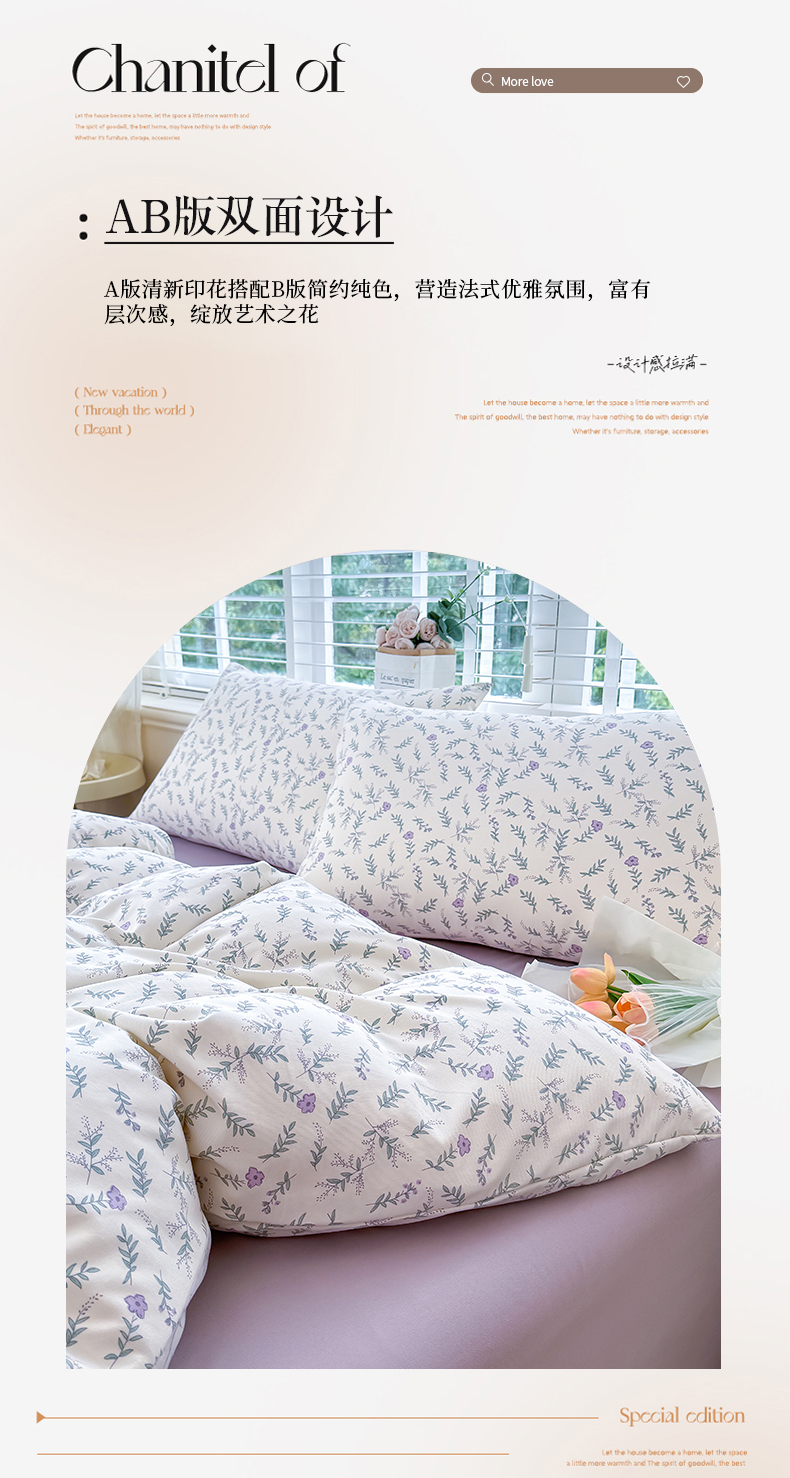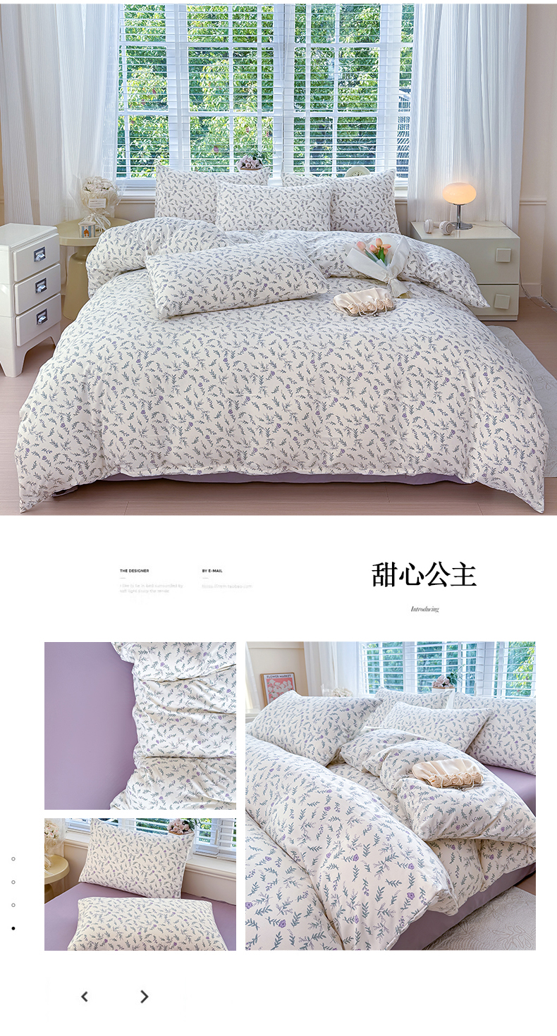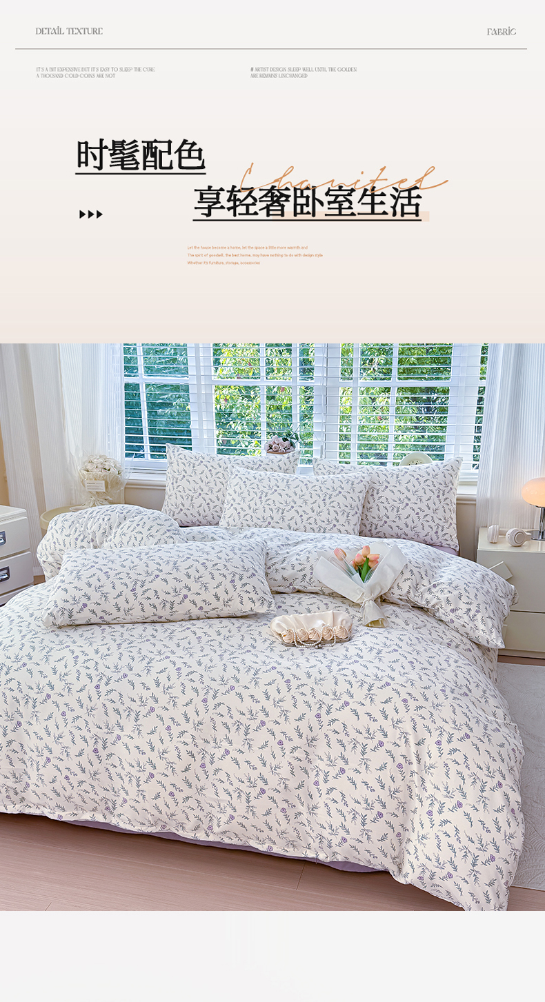 金米诺 新款韩版花边水洗棉泡泡纱四件套公主条四件套 褶皱-浅紫,褶皱-浅紫