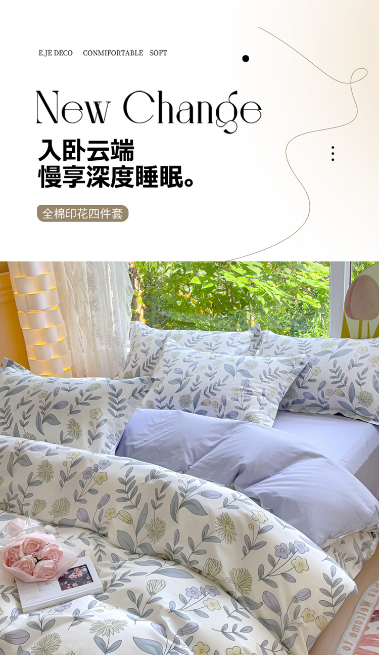 当前位置: 91家纺网 > 商品网购 > 床品套件 > 四件套 > 全棉普通四件套 > 2023-2024新款13070全棉好卖花型套件系列-四件套 诗情画意