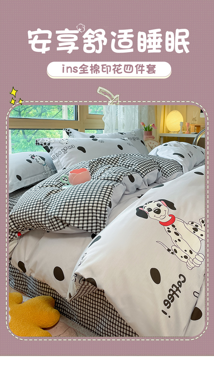 当前位置: 91家纺网 > 商品网购 > 床品套件 > 四件套 > 全棉普通四件套 > 2023-2024新款13070全棉好卖花型套件系列-四件套 小可爱