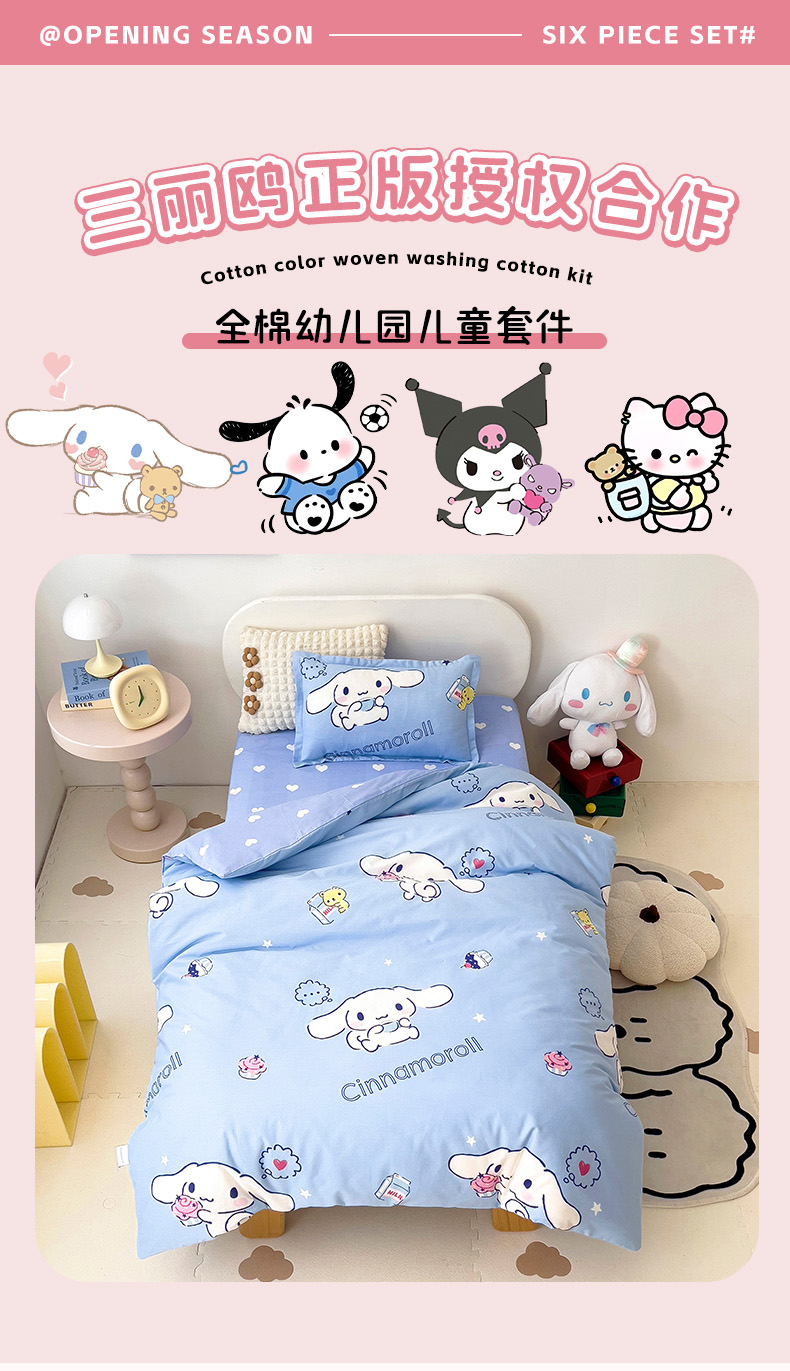当前位置: 91家纺网 > 商品网购 > 床品套件 > 多件套 > 多件套 > 芭伯妮 2025新款全棉三丽鸥幼儿园三件套 儿童宝宝午睡套件 含芯六件套 甜品玉桂狗