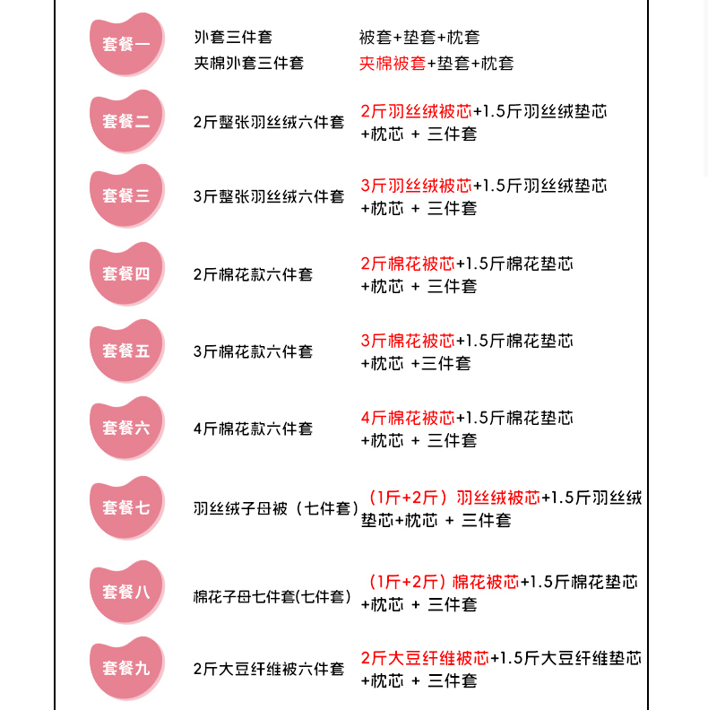 夹棉款-3斤整张羽丝绒六件套 | ¥118.00 |