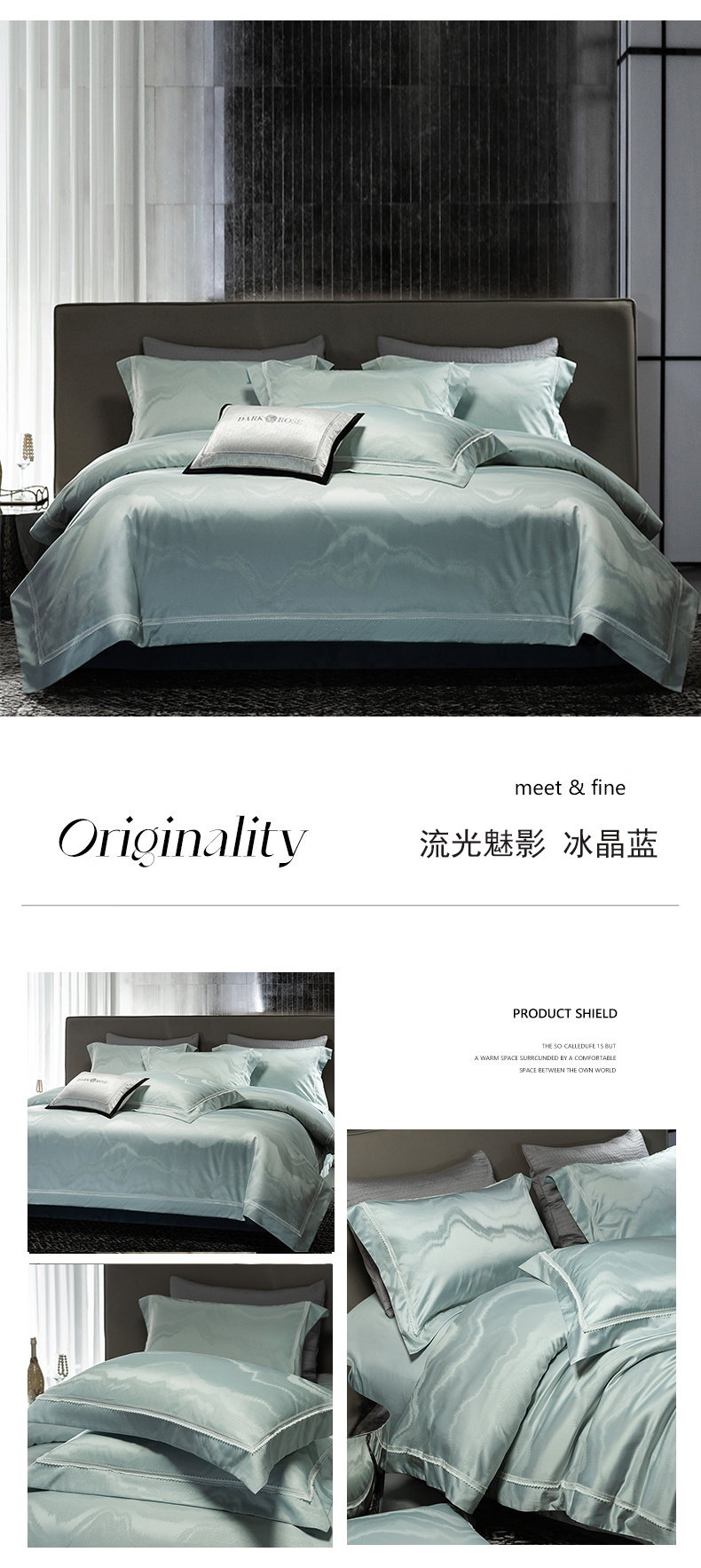 商品名称:诗黛尔 2025春夏新款鎏金提花长绒棉四件套-流光魅影系列 流光魅影 冰晶蓝