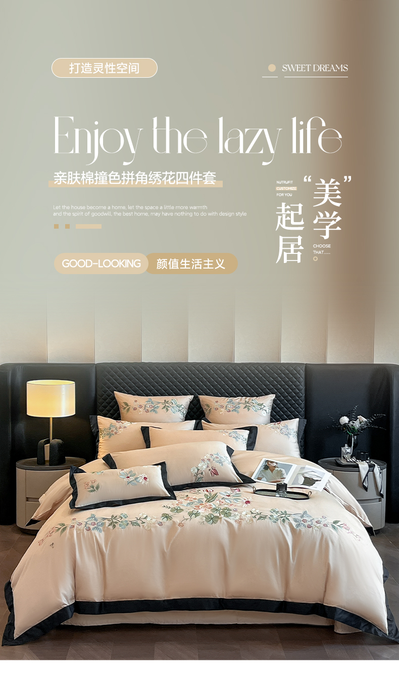 商品名称:(总)2025新款亲肤棉撞色拼角绣花四件套-可可西里