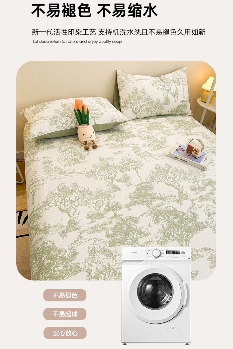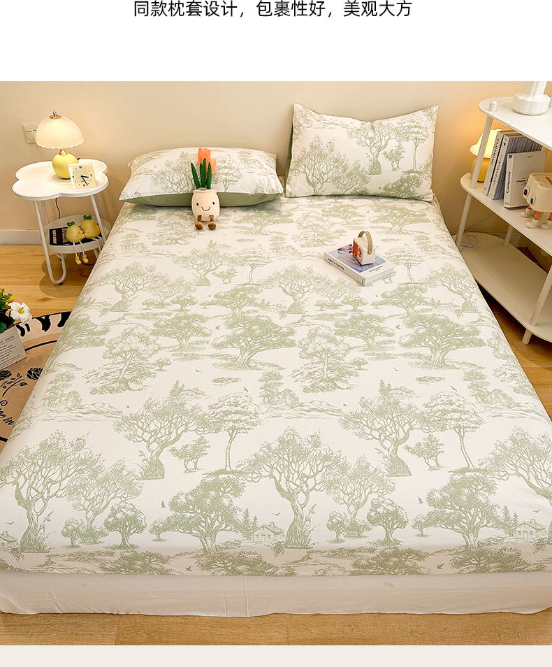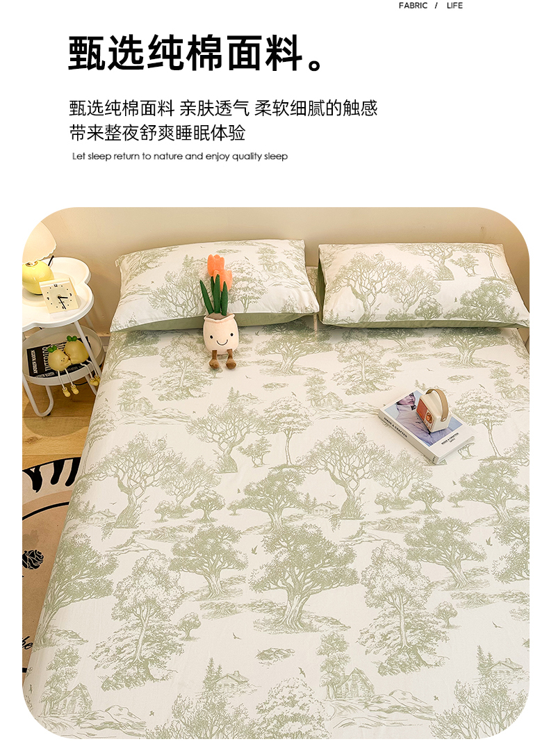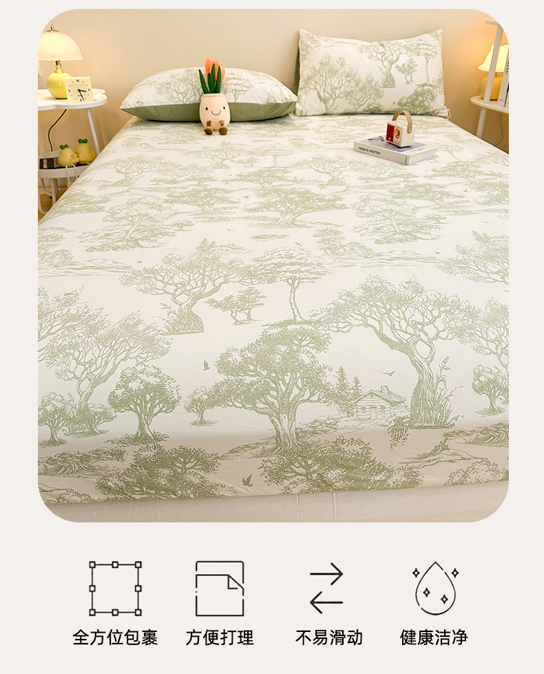 简宜家居(朝初家纺) 2025新款A版纯棉全棉磨毛单床笠 翠影凝香
