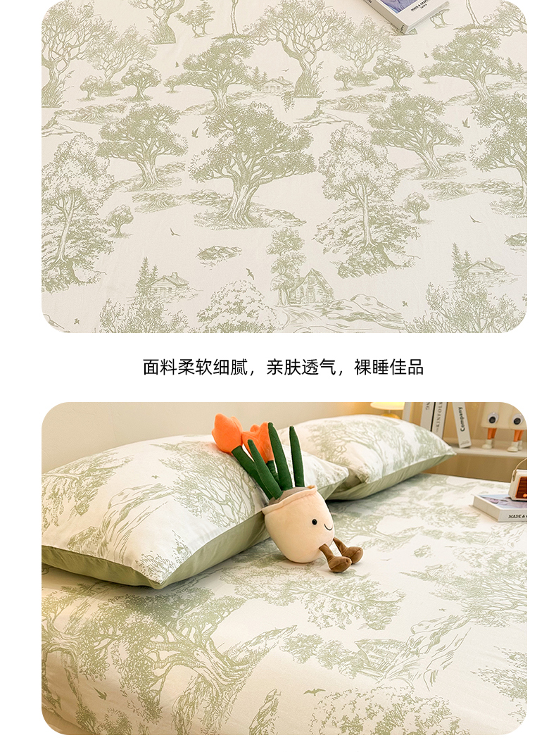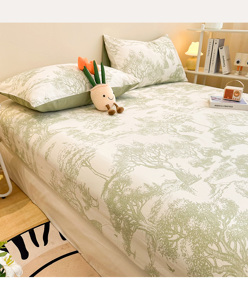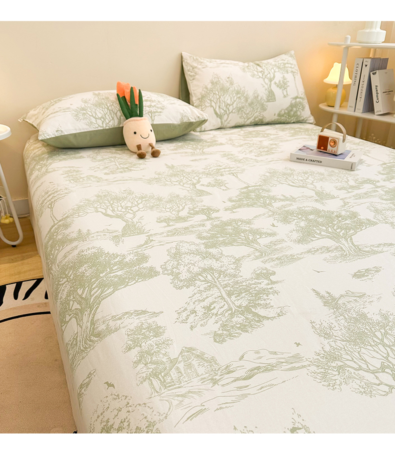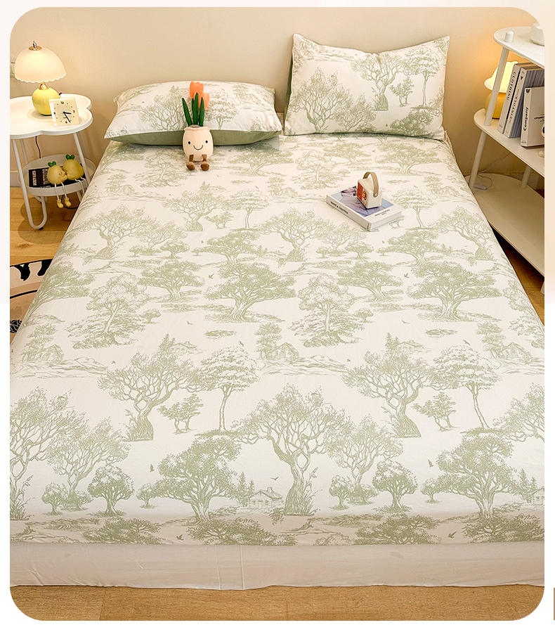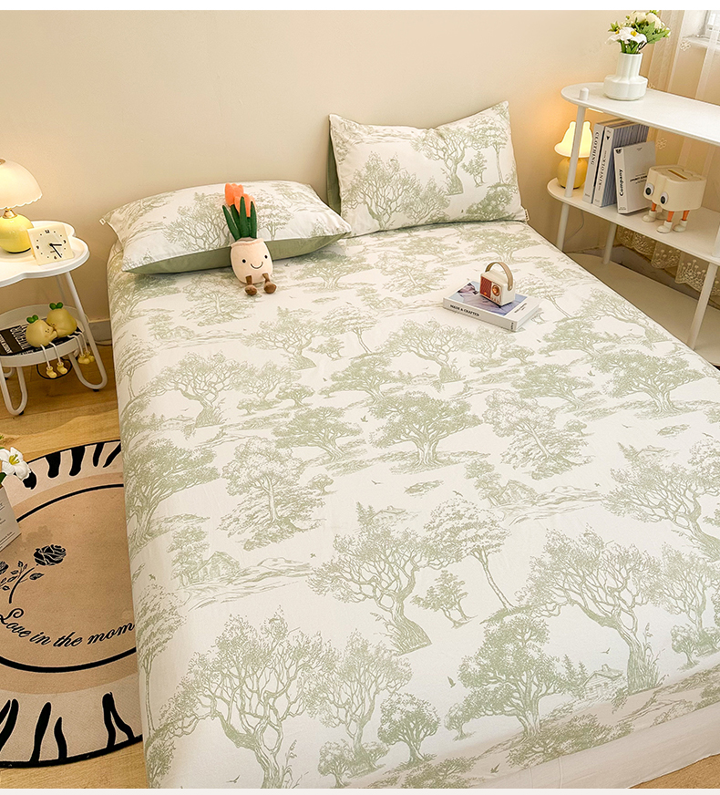简宜家居(朝初家纺) 2025新款A版纯棉全棉磨毛单床笠 翠影凝香