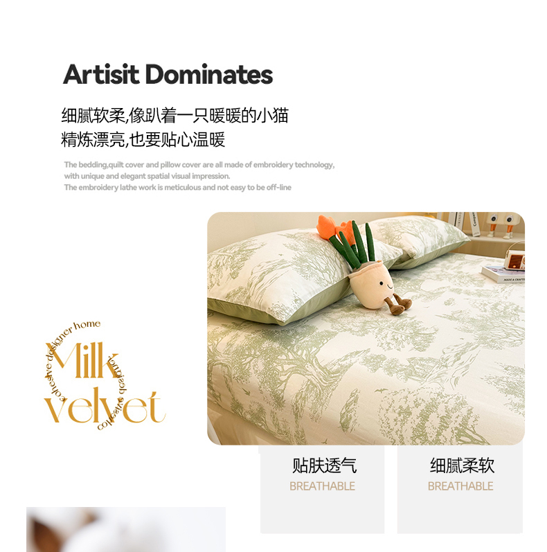 (总)简宜家居(朝初家纺) 2025新款印花兔兔绒+纯色牛奶绒双拼四件套,蝶影暖绒,米绒花絮,墨绒花-奶白,秋枝果绿,秋枝焦糖,一支秀-咖
