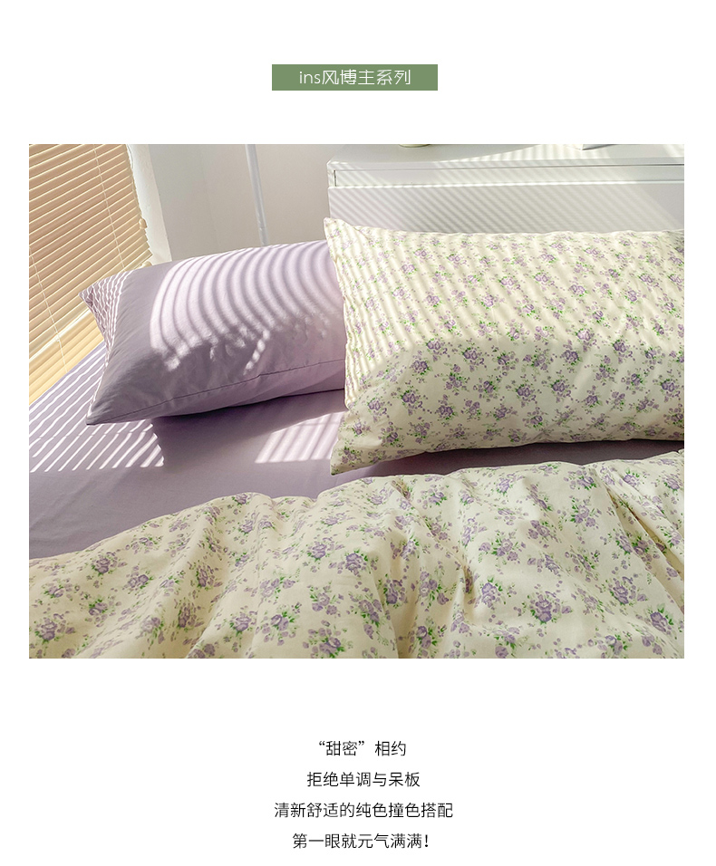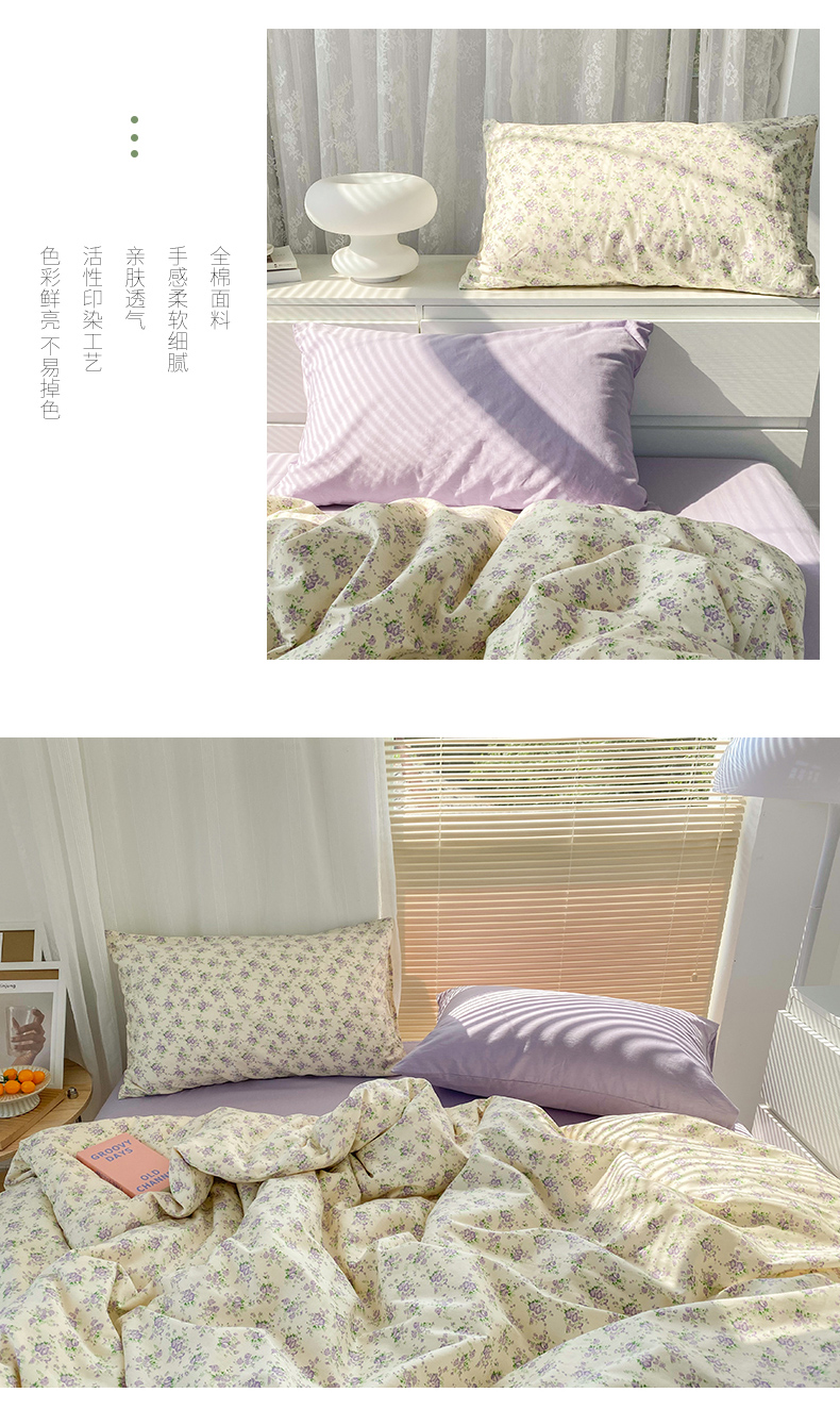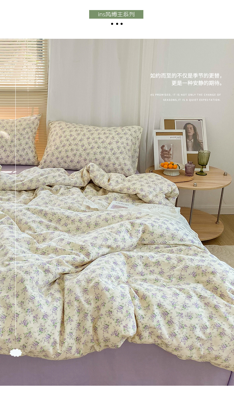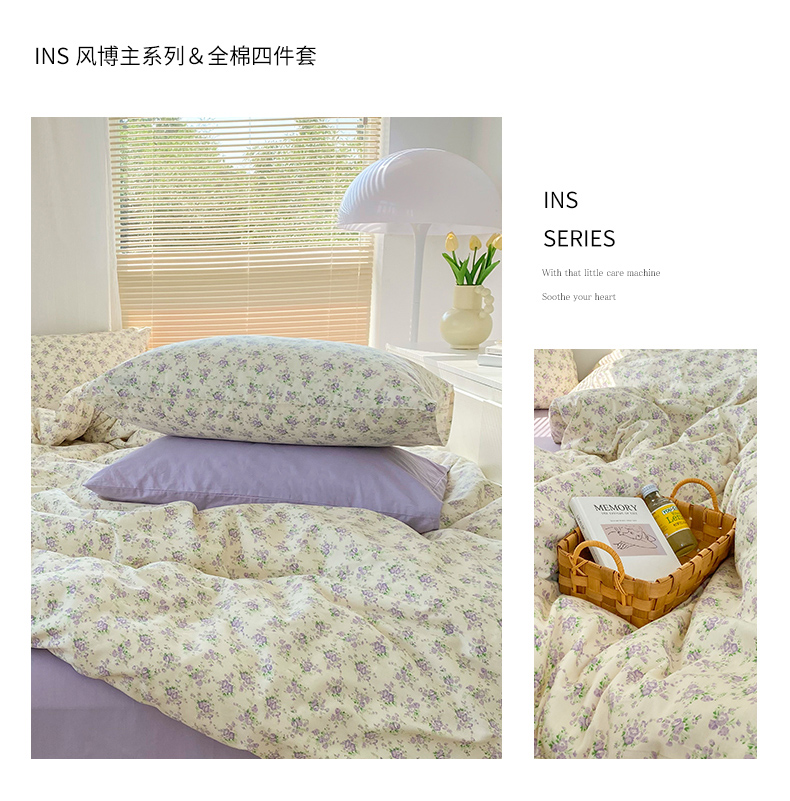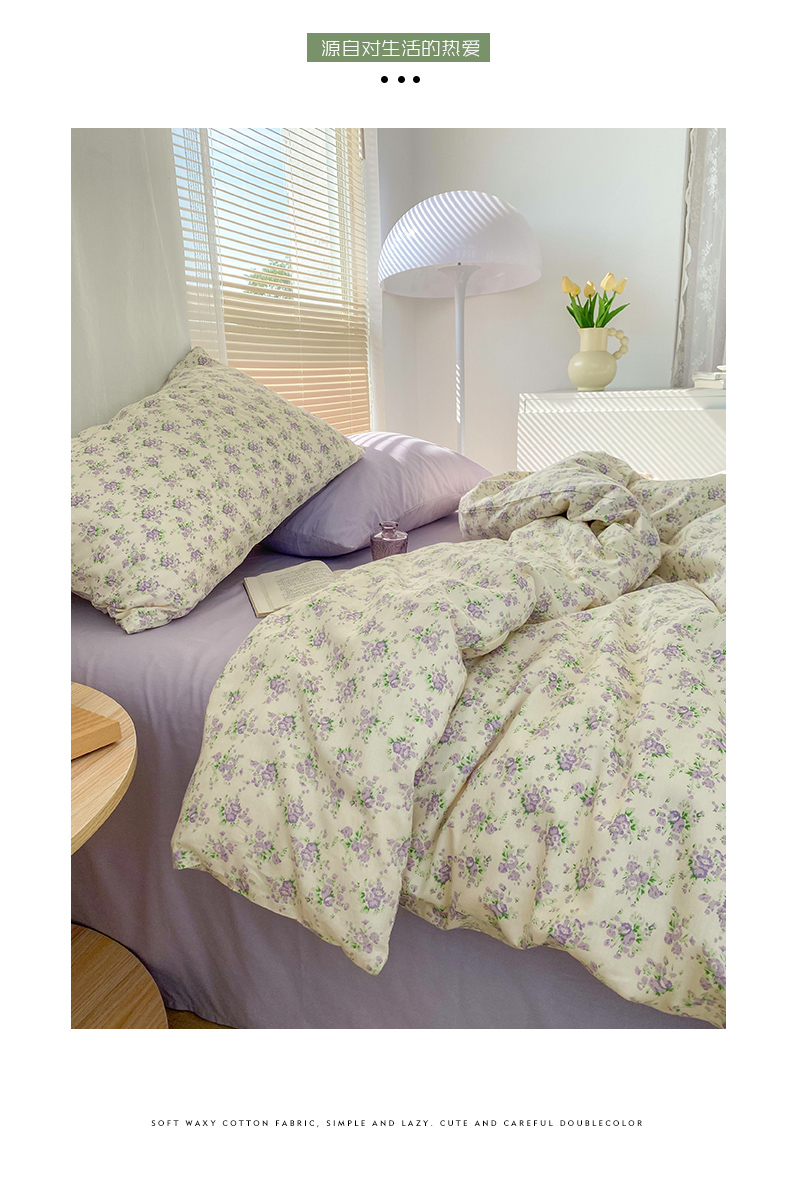 当前位置: 91家纺网 > 商品网购 > 床品套件 > 四件套 > 全棉普通四件套 > 尺素 2025新款纯棉印花13372全棉田园风被套韩式小清新碎花四件套 雾岛听风
