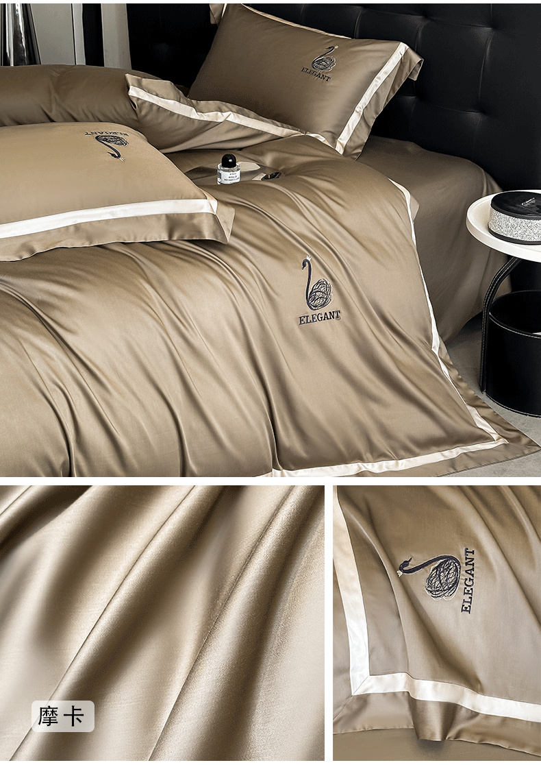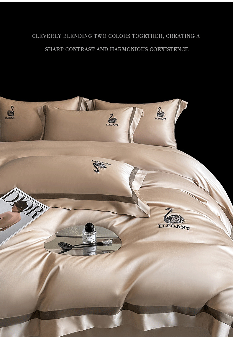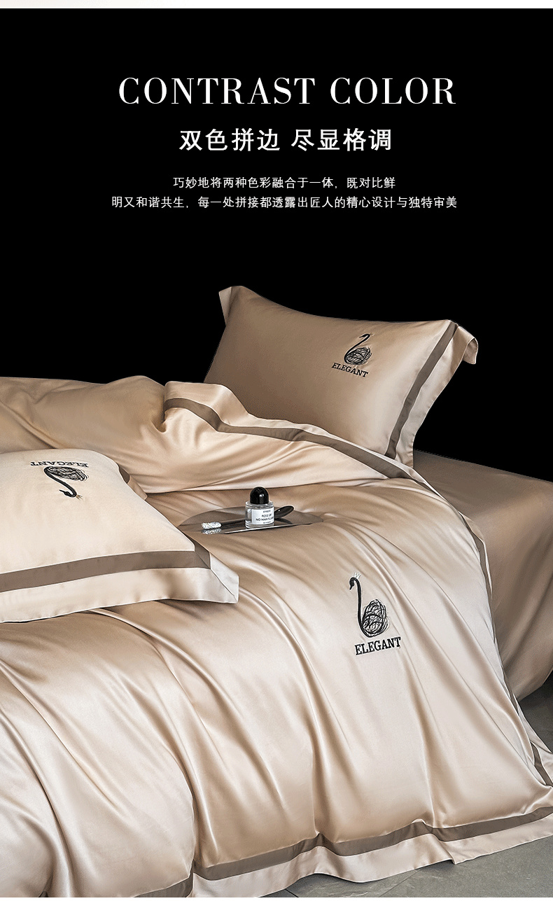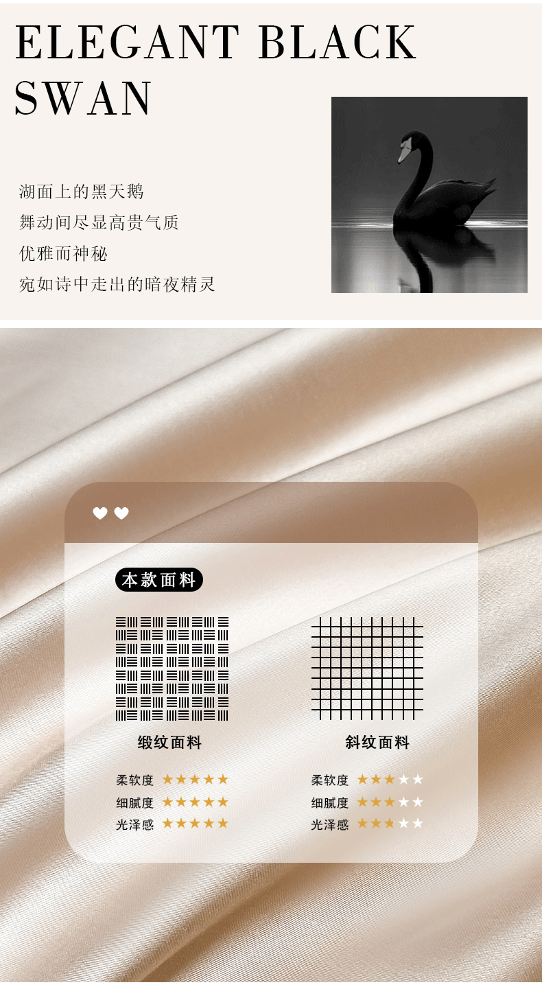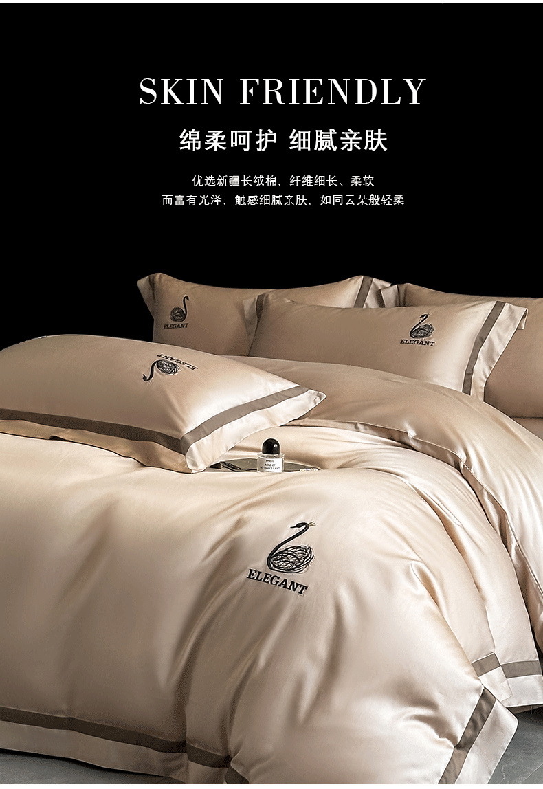 商品名称:618家纺 2025新款A类60S100支全棉纯棉四件套-天鹅之舞 天鹅之舞-香槟金