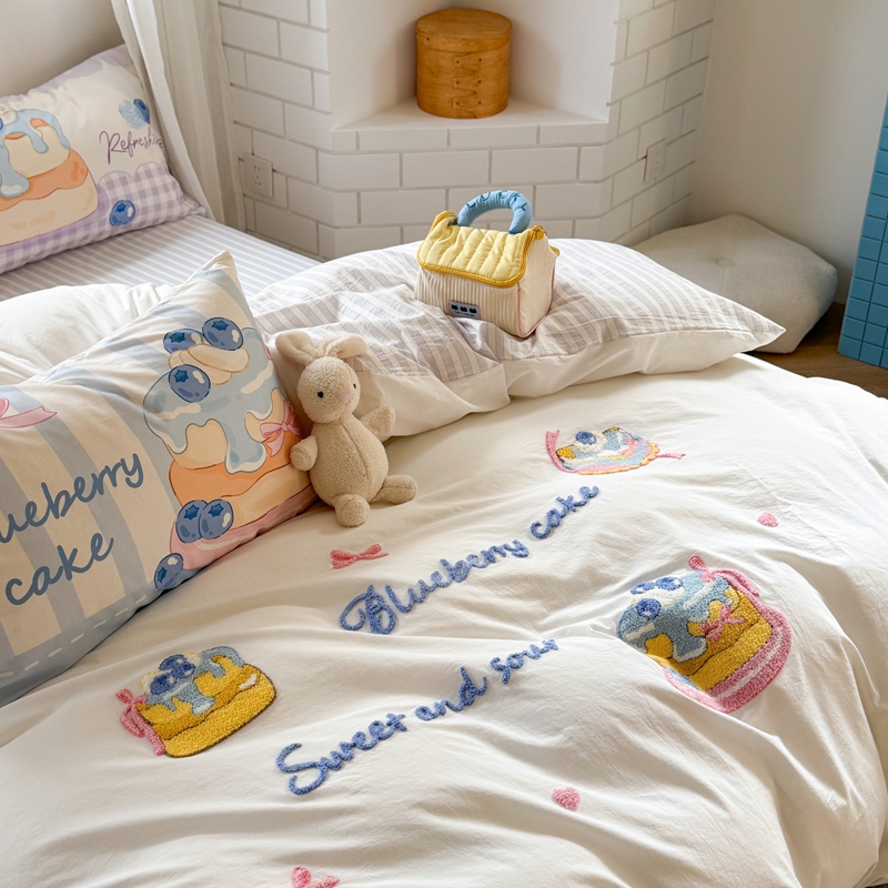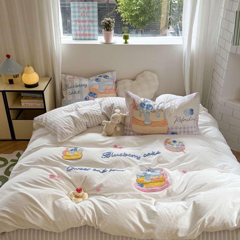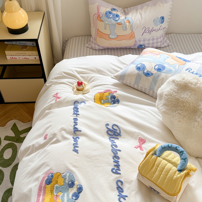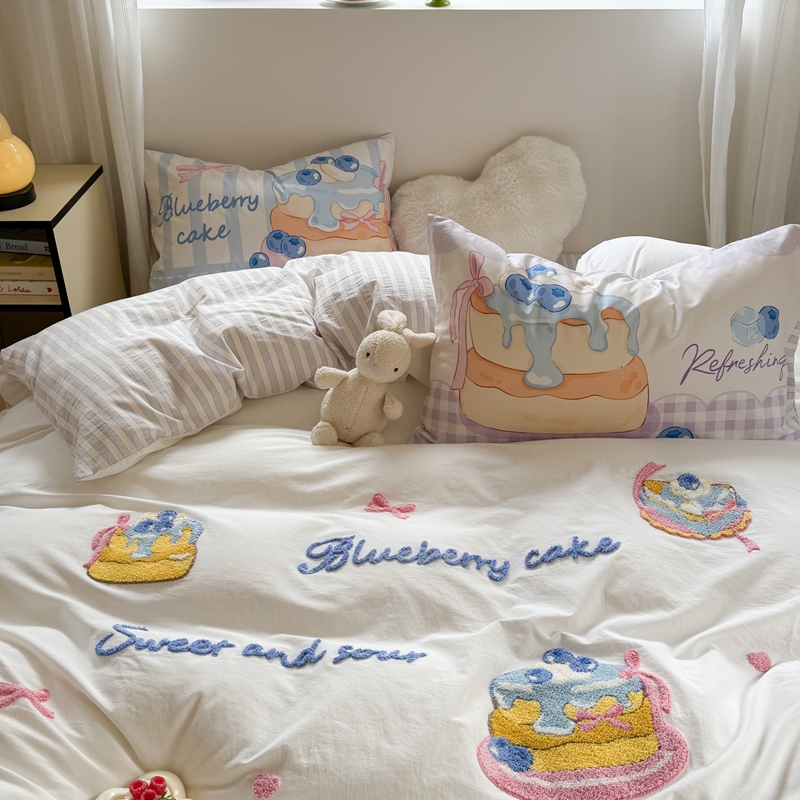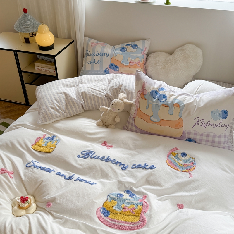 柚子YOUTH 2025新款水洗棉条格毛巾绣四件套 蓝莓芝士