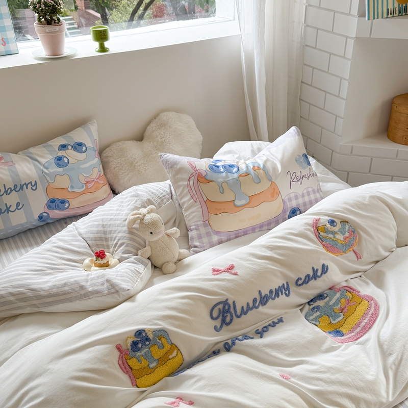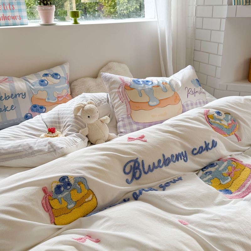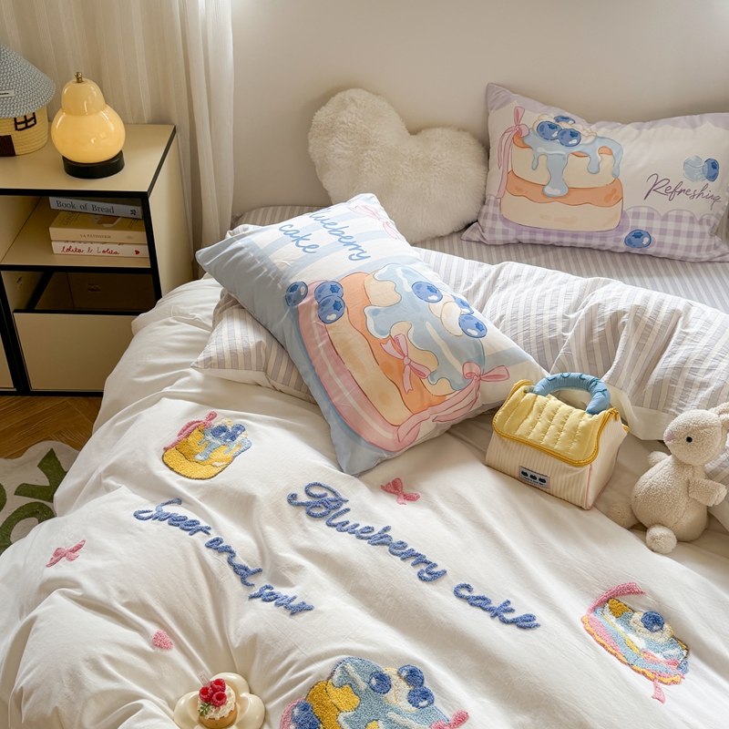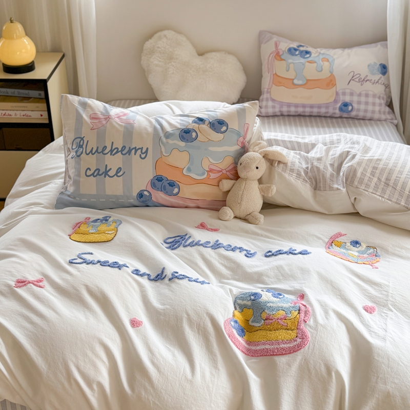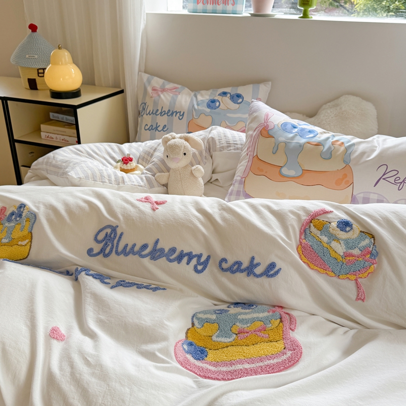 柚子YOUTH 2025新款水洗棉条格毛巾绣四件套 蓝莓芝士