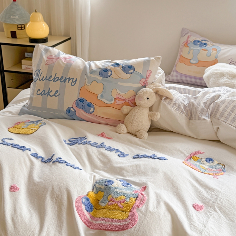 商品名称:柚子YOUTH 2025新款水洗棉条格毛巾绣四件套 蓝莓芝士