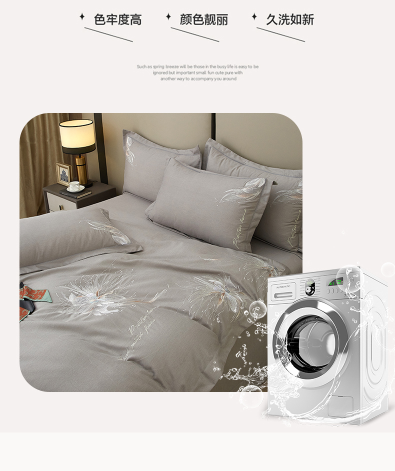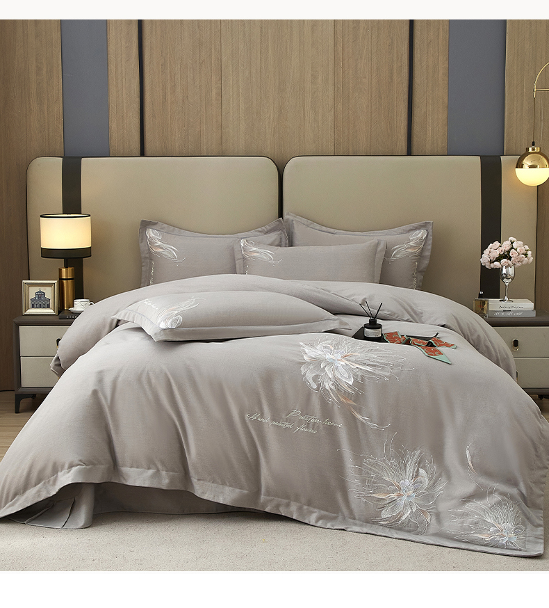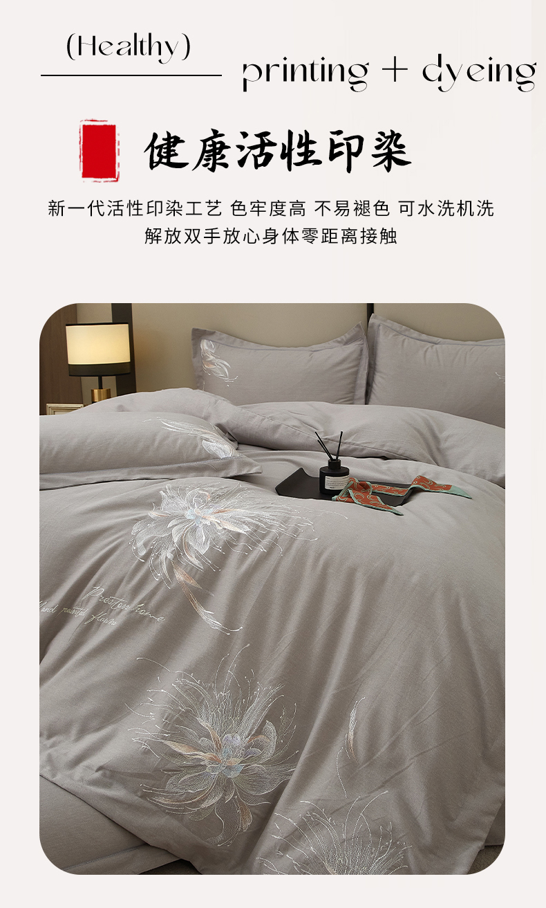 雲归梦 2025新款全棉加厚磨毛绣花宽边工艺四件套-叶语情深 叶语情深-灰