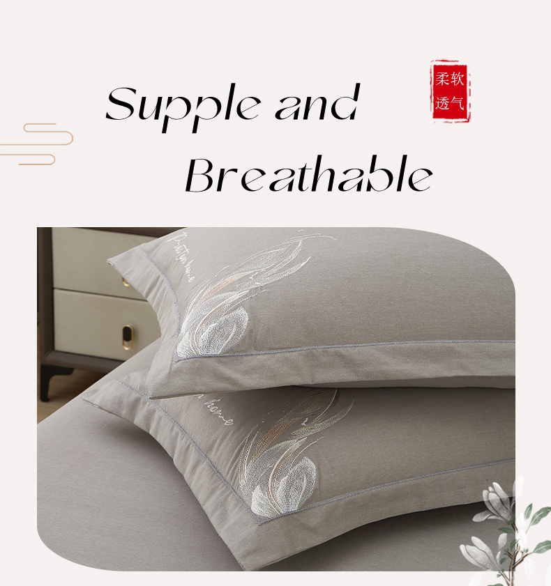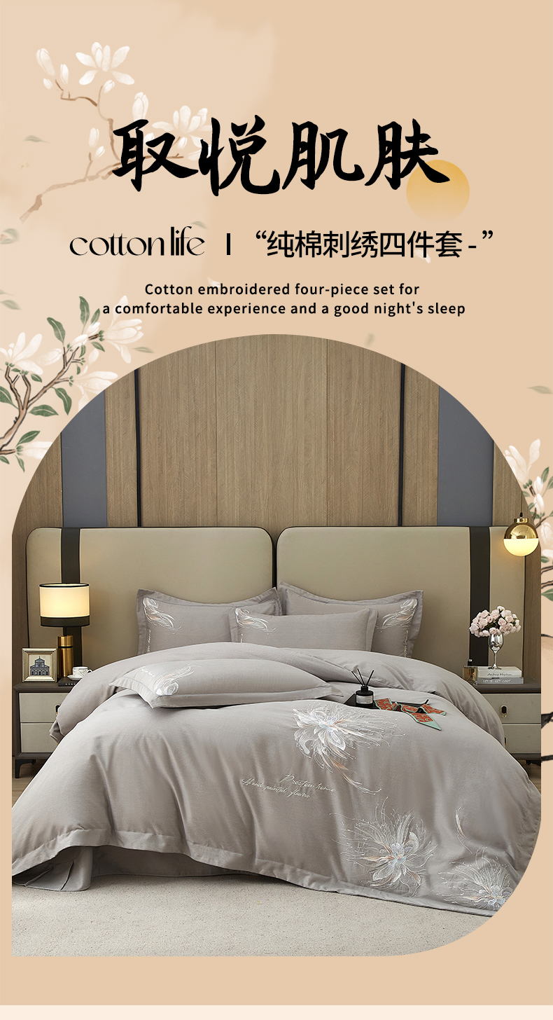 商品名称:雲归梦 2025新款全棉加厚磨毛绣花宽边工艺四件套-叶语情深 叶语情深-灰