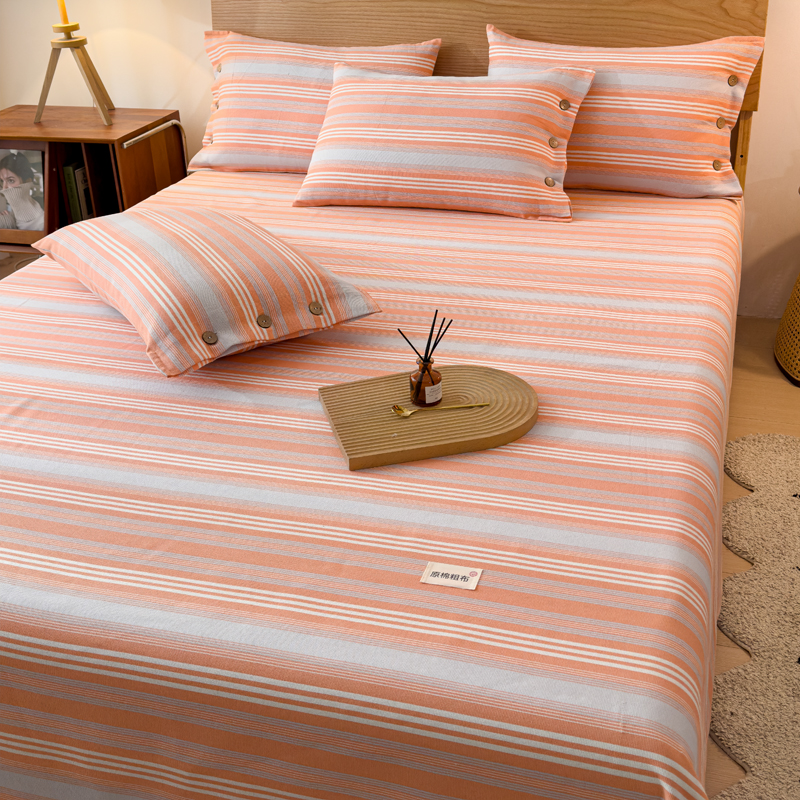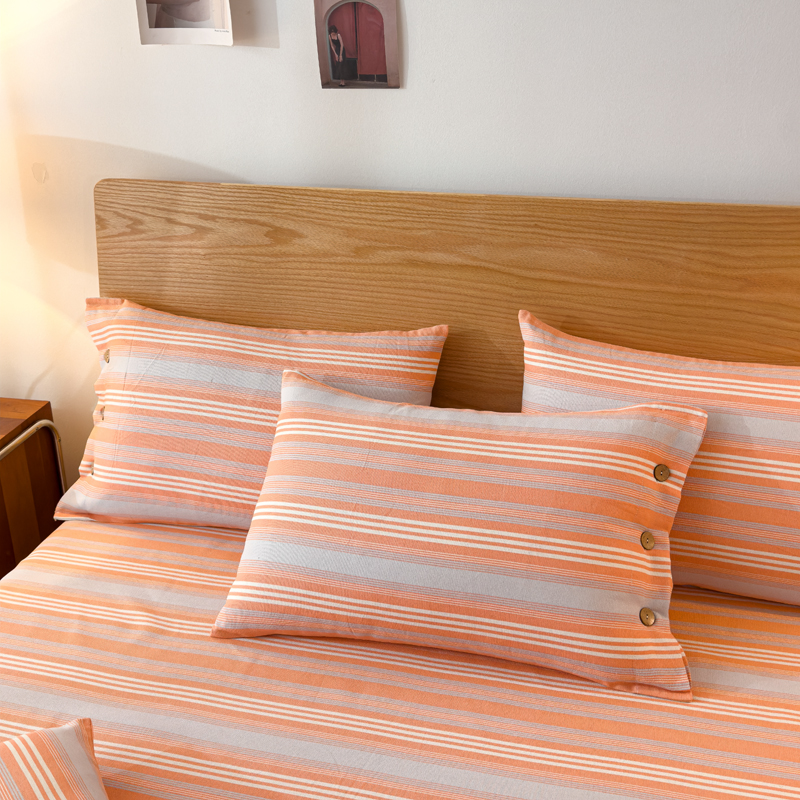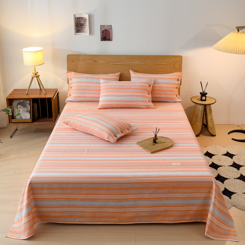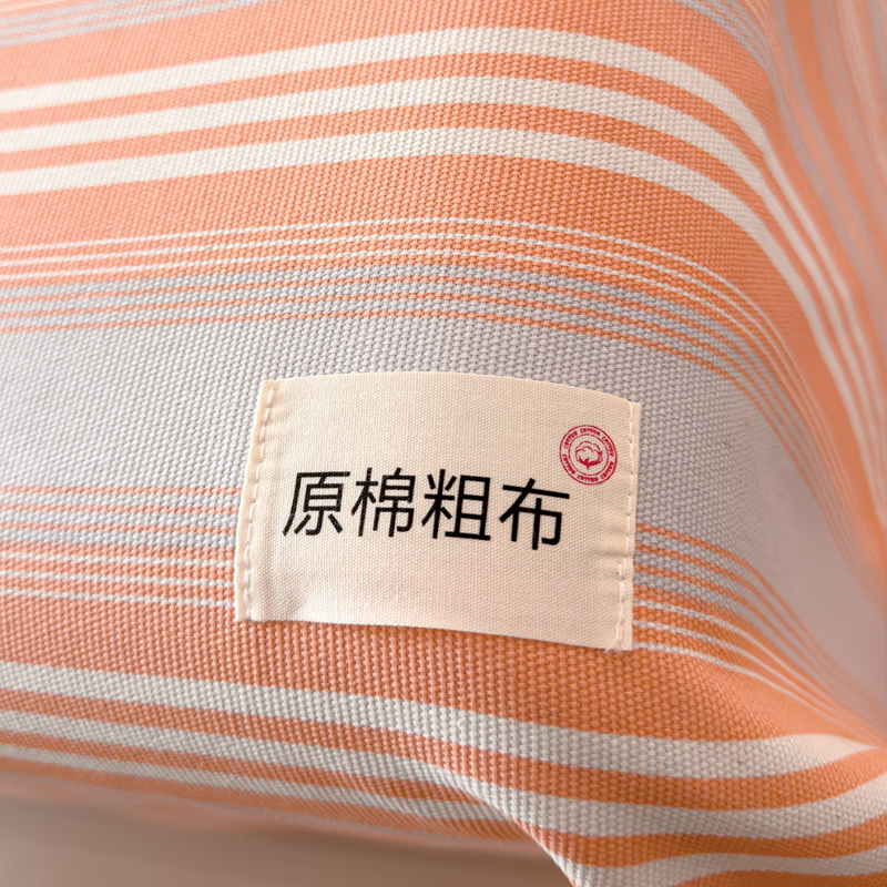 商品名称:仟网汇 2025新款无印纽扣原棉老粗布三件套 条纹橘