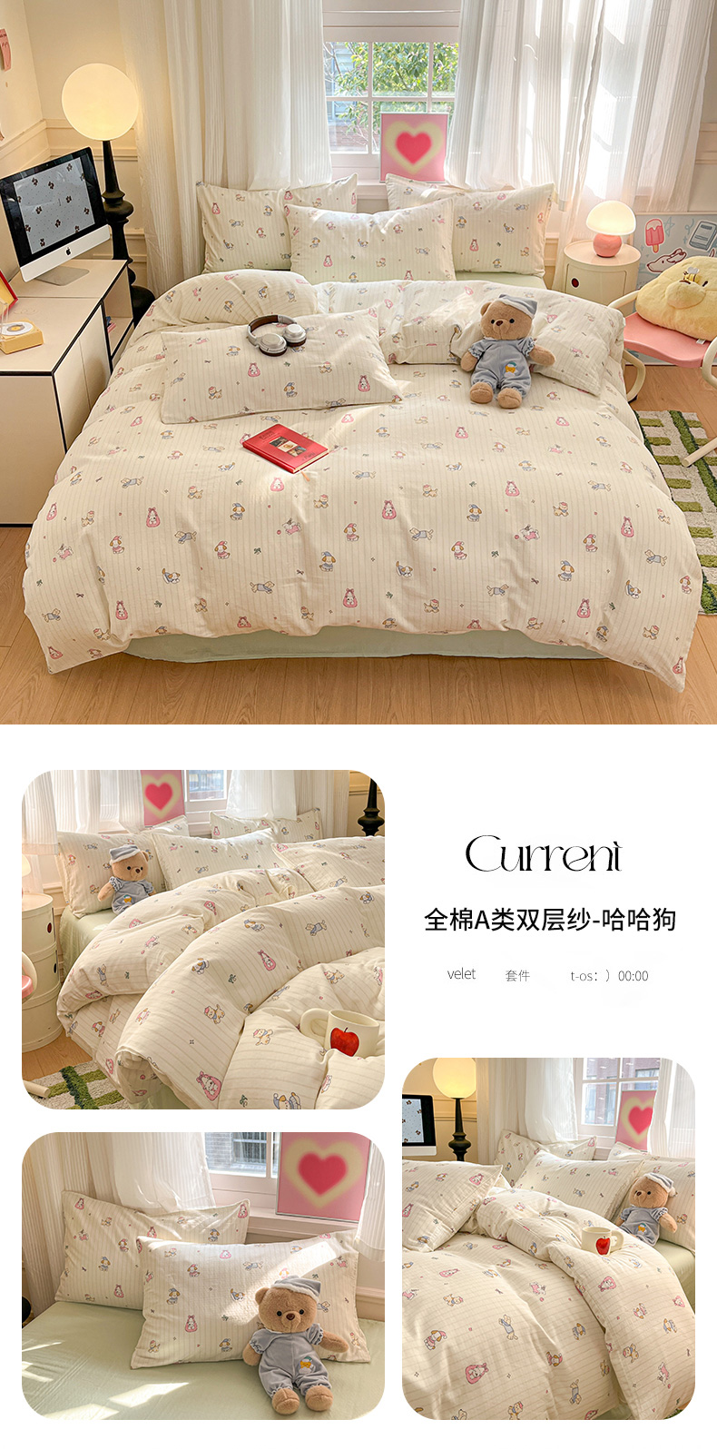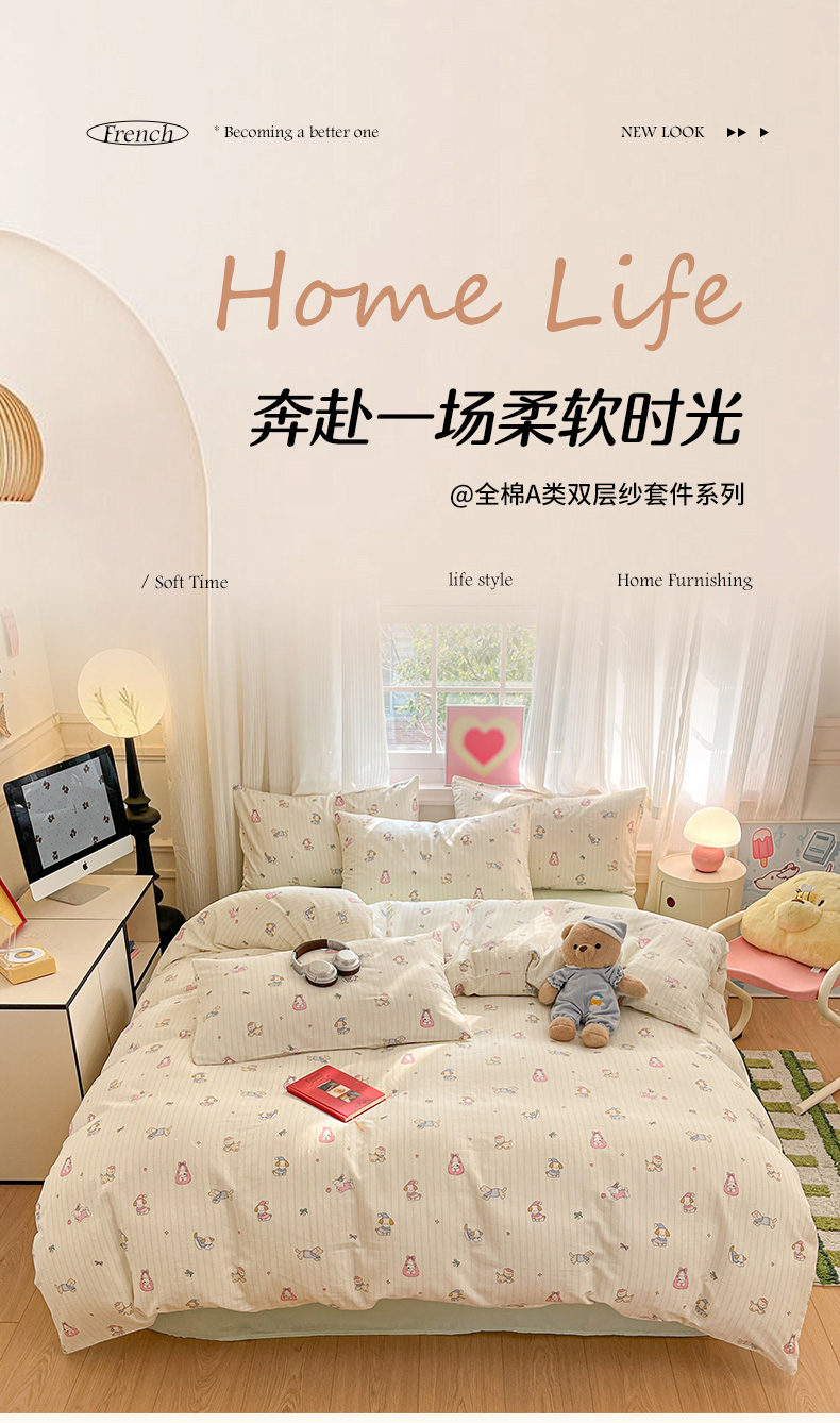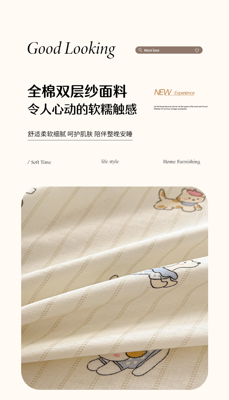 当前位置: 91家纺网 > 商品网购 > 床品套件 > 四件套 > 博雅 2025新款全棉A类双层纱四件套 哈哈狗