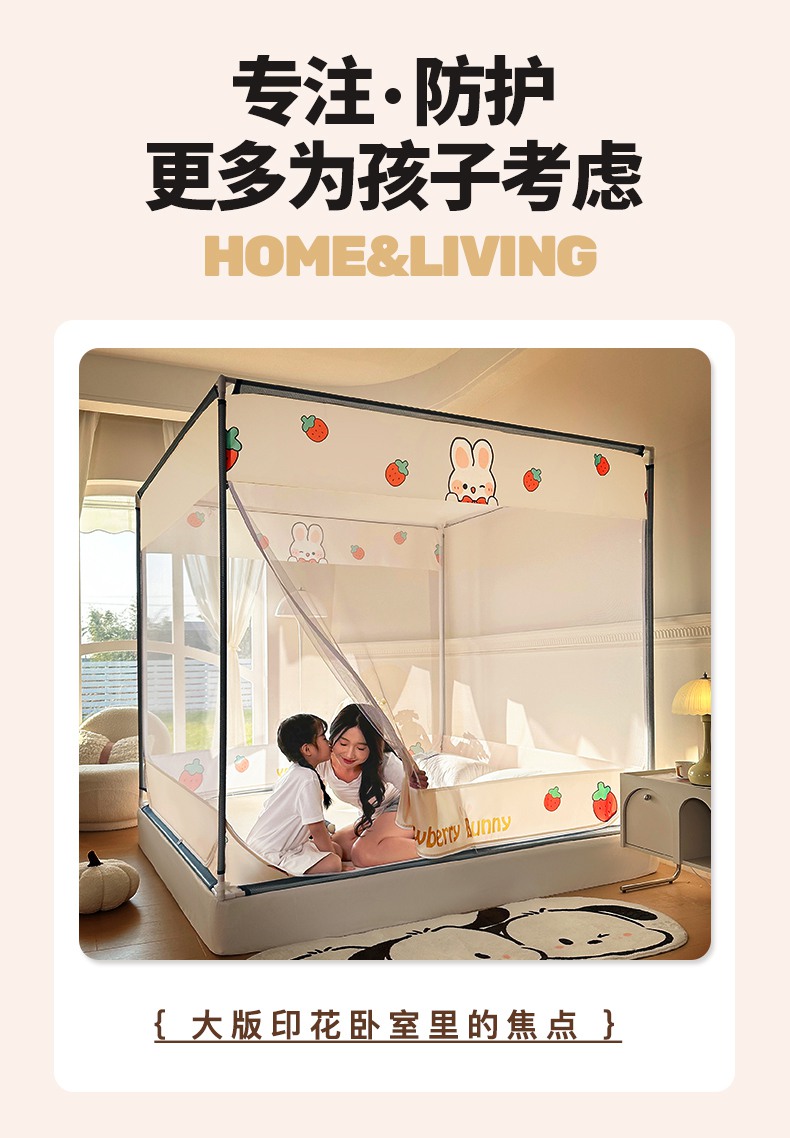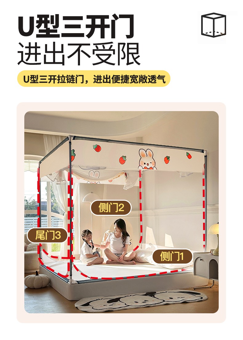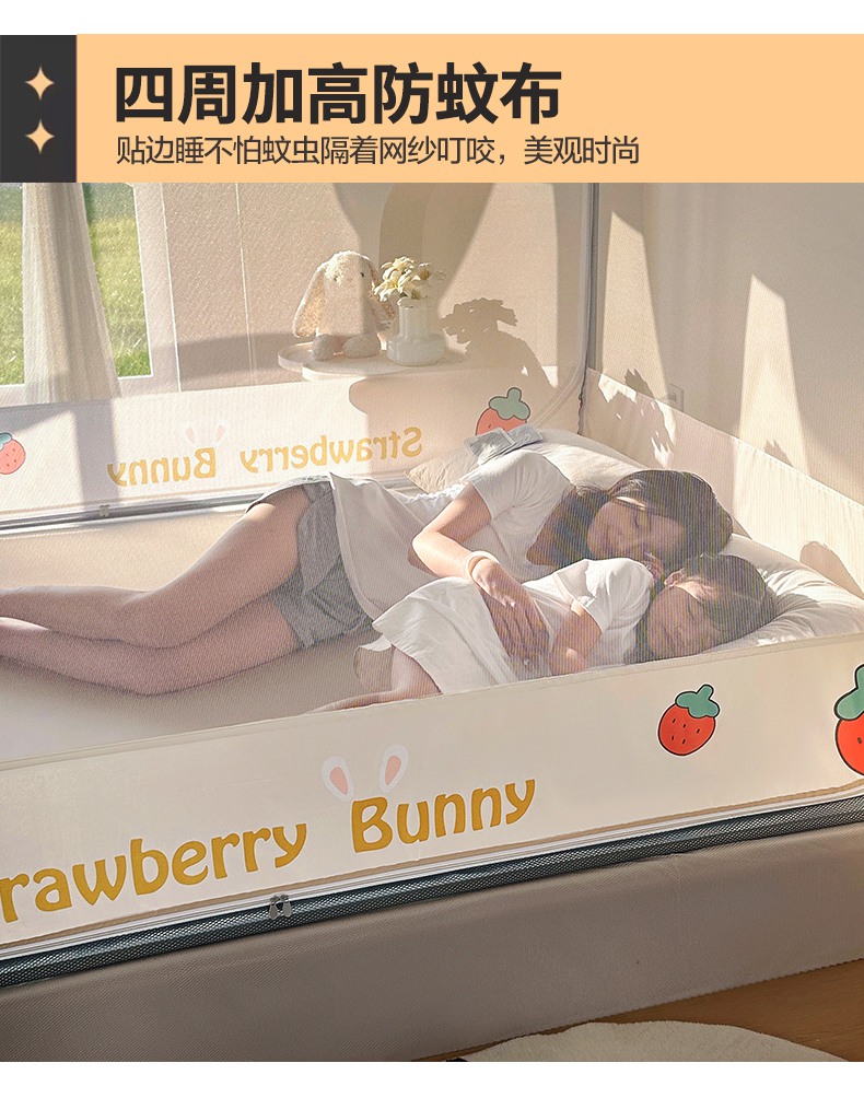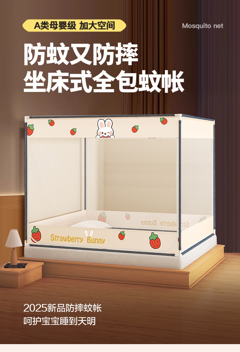 当前位置: 91家纺网 > 商品网购 > 床上用品 > 蚊帐 > 坐床式蚊帐 > 青竹苑 2025新款三门大版上下布印花外穿坐床蚊帐床笠式防摔方帐 草莓兔兔