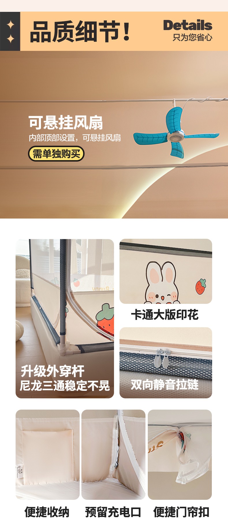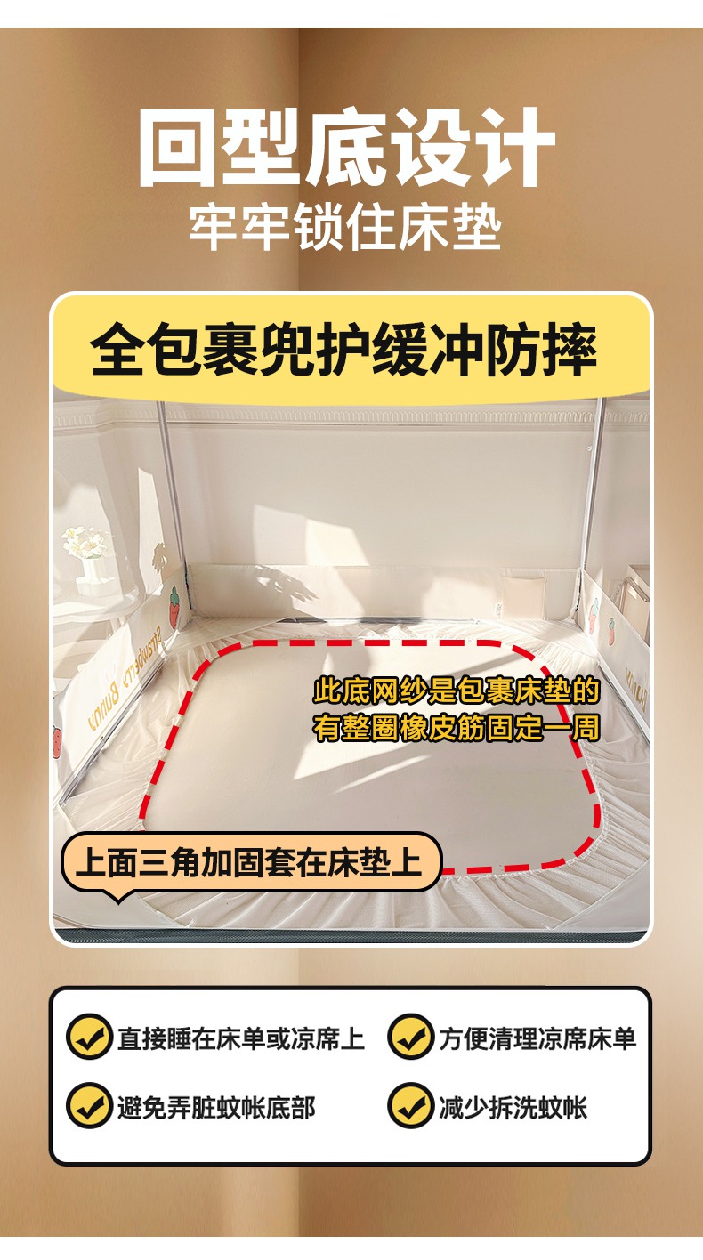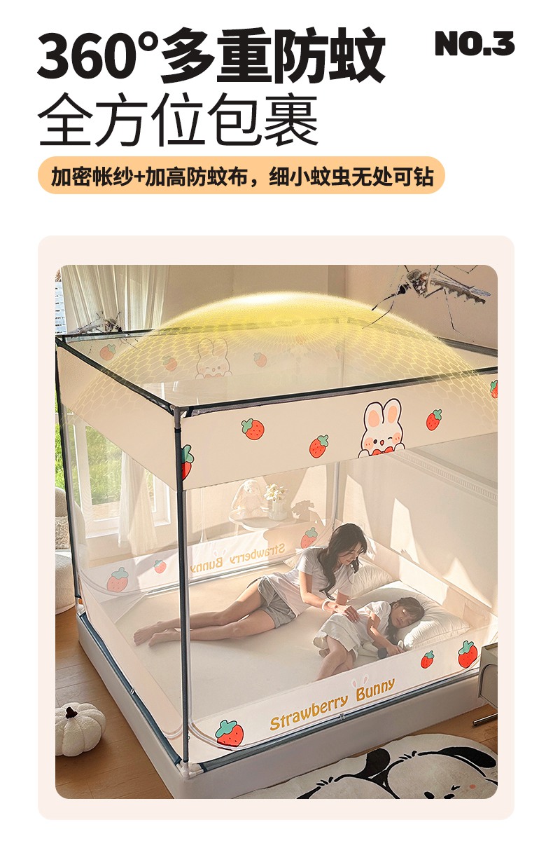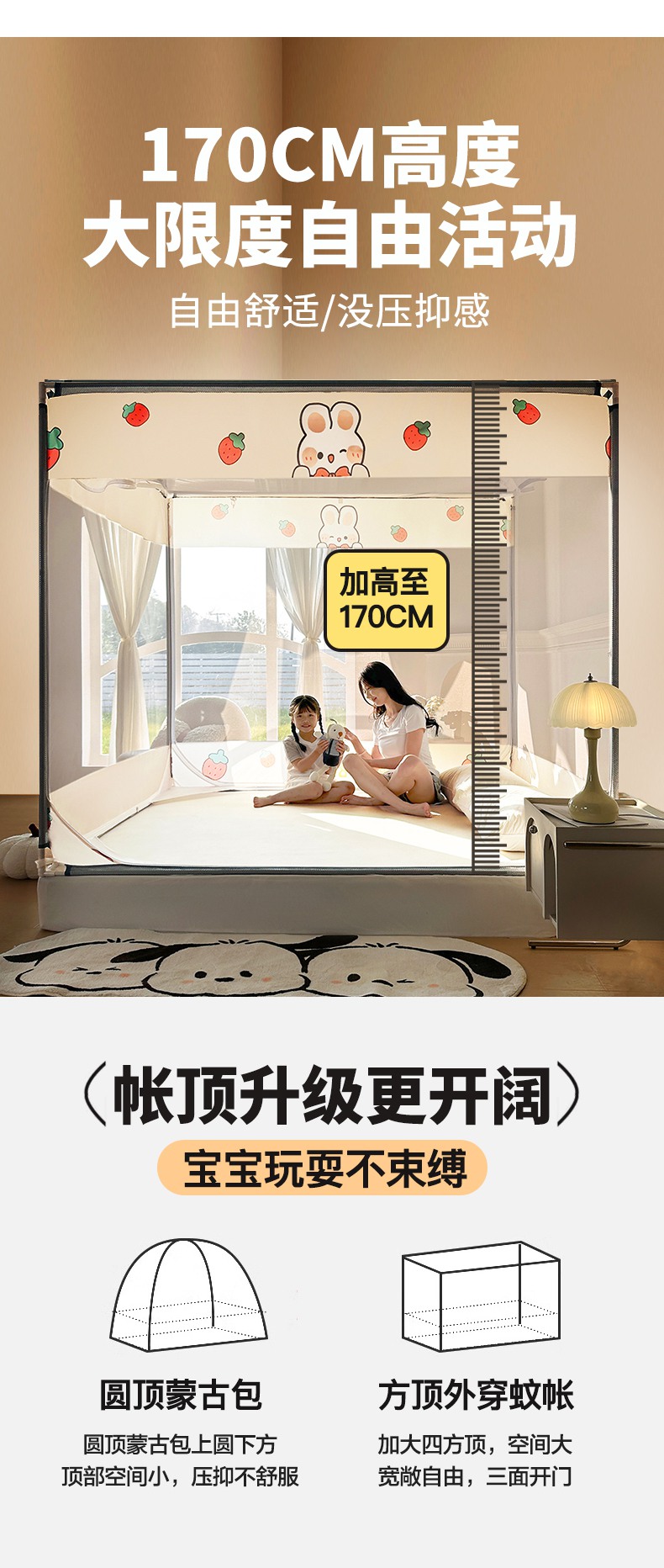 当前位置: 91家纺网 > 商品网购 > 床上用品 > 蚊帐 > 坐床式蚊帐 > 青竹苑 2025新款三门大版上下布印花外穿坐床蚊帐床笠式防摔方帐 草莓兔兔