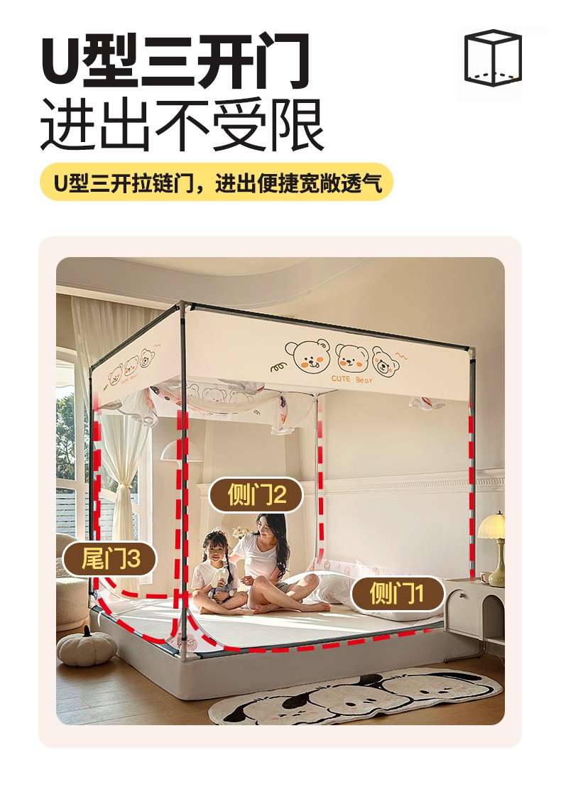 当前位置: 91家纺网 > 商品网购 > 床上用品 > 蚊帐 > 坐床式蚊帐 > 青竹苑 2025新款三门大版上下布印花外穿坐床蚊帐床笠式防摔方帐 熊熊出没