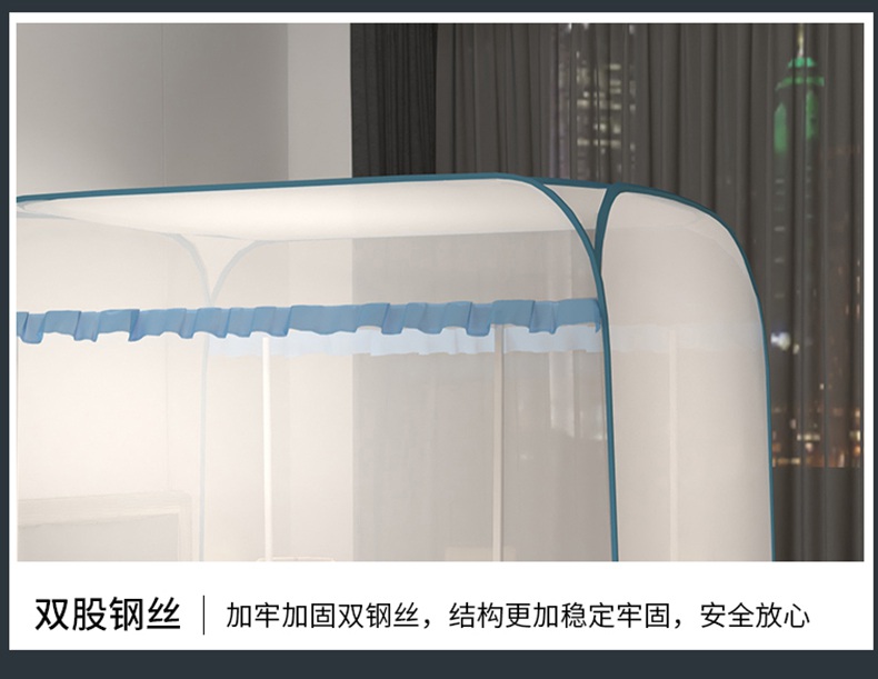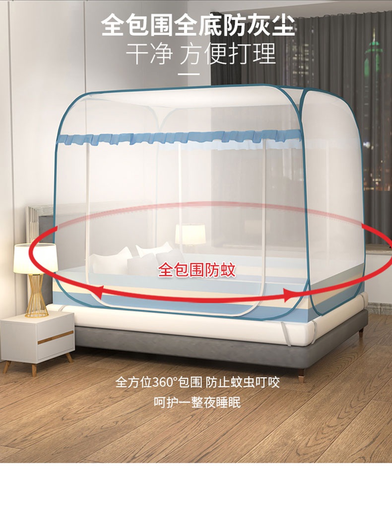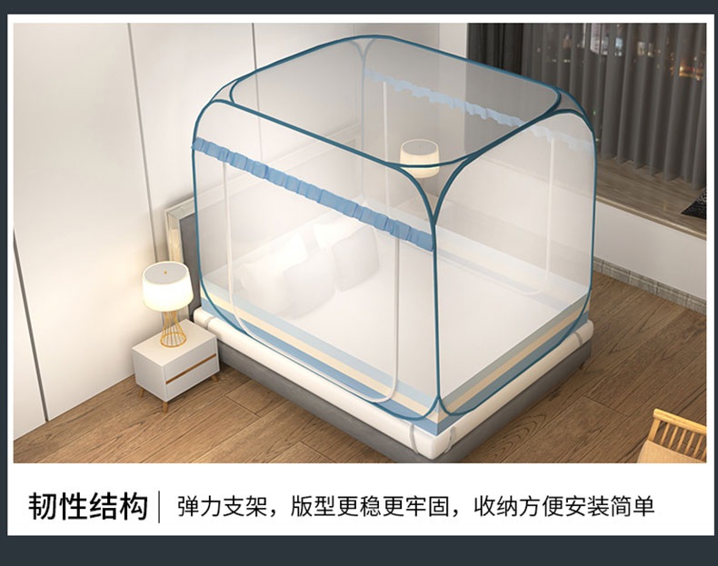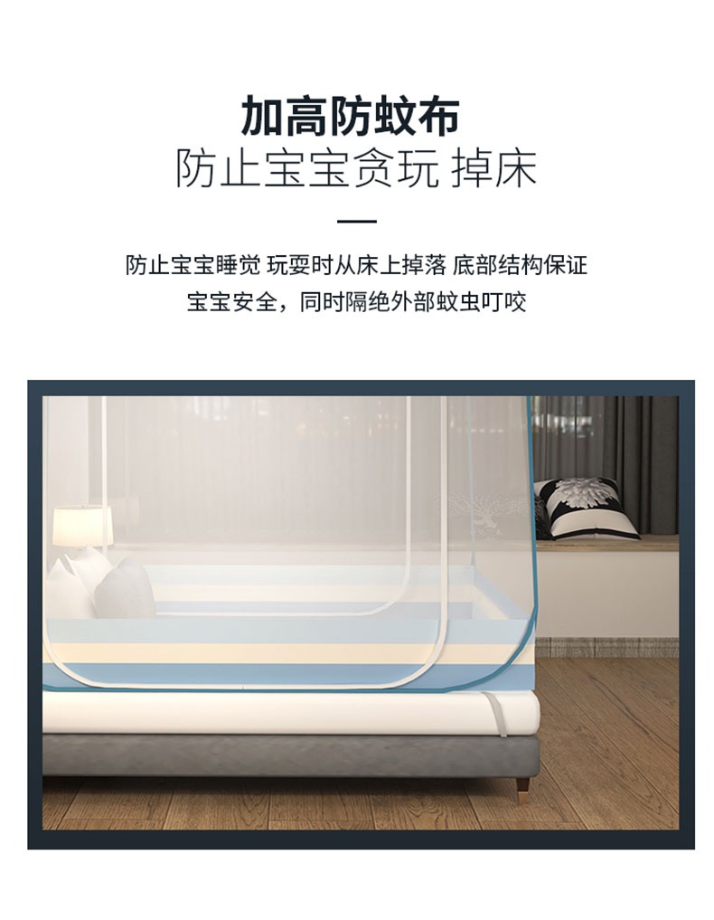 商品名称:青竹苑 2025新款免安装大顶魔术蚊帐 条纹蓝