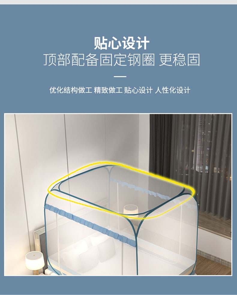 青竹苑 2025新款免安装大顶魔术蚊帐 条纹蓝
