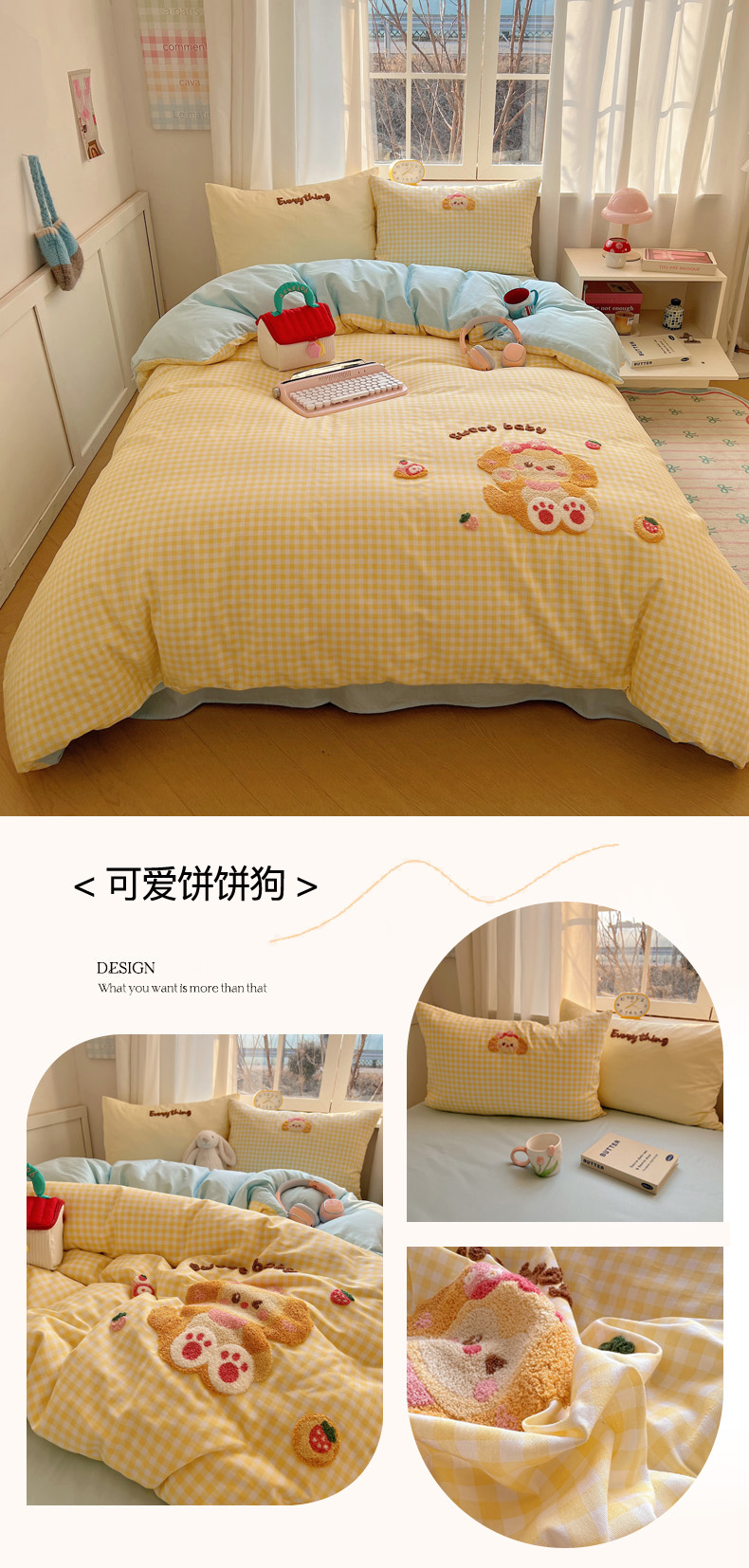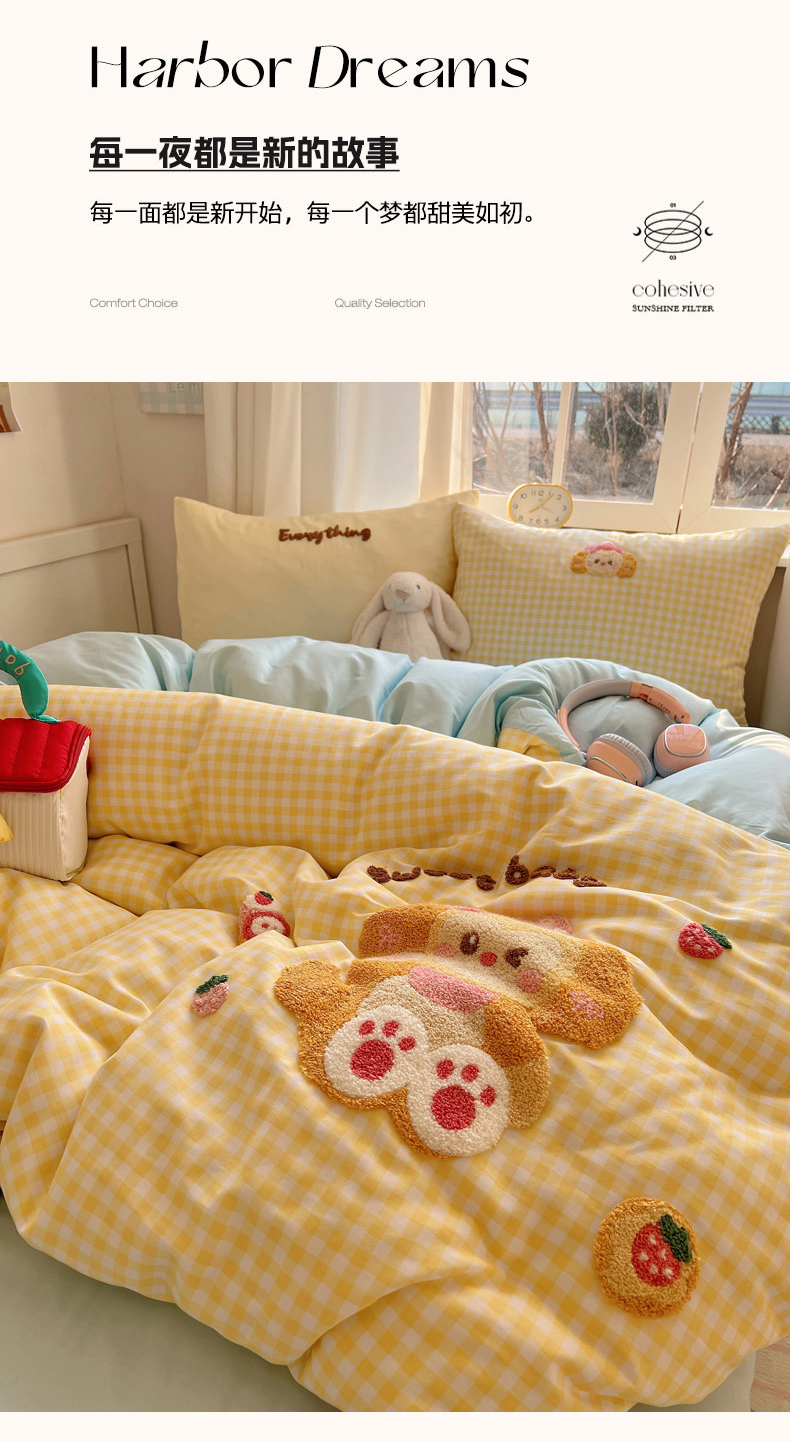 商品名称:丽涵家纺 2025新款全棉印花毛巾绣卡通四件套 可爱饼饼狗