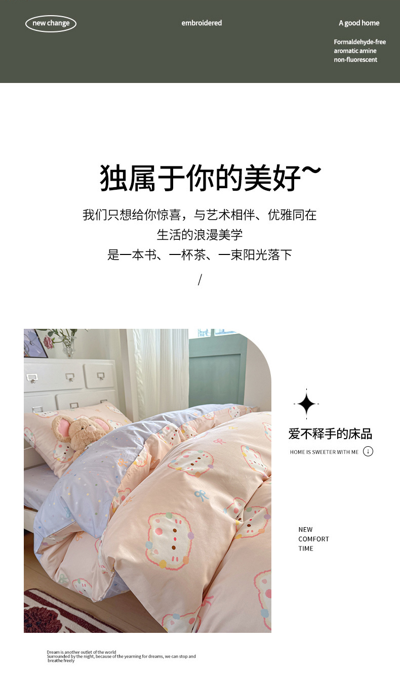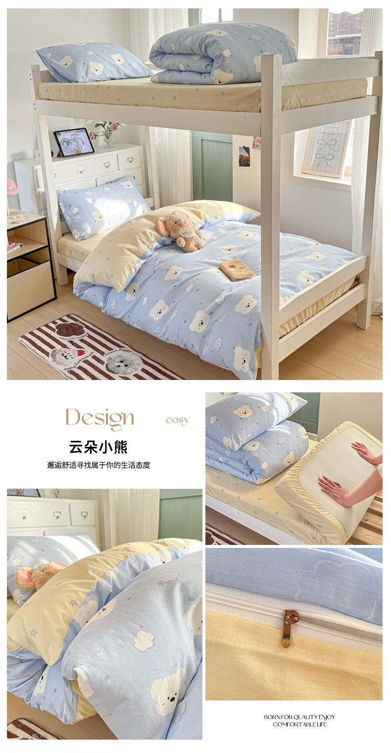 当前位置: 91家纺网 > 商品网购 > 床品套件 > 三件套 > 寻米 2025新款13070全棉水洗棉学生三件套 小猫球球