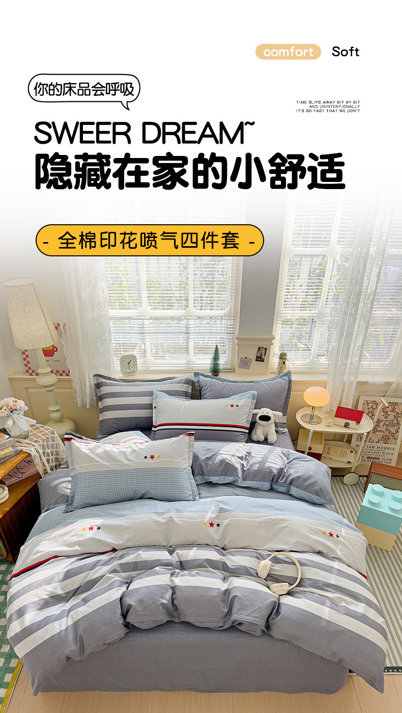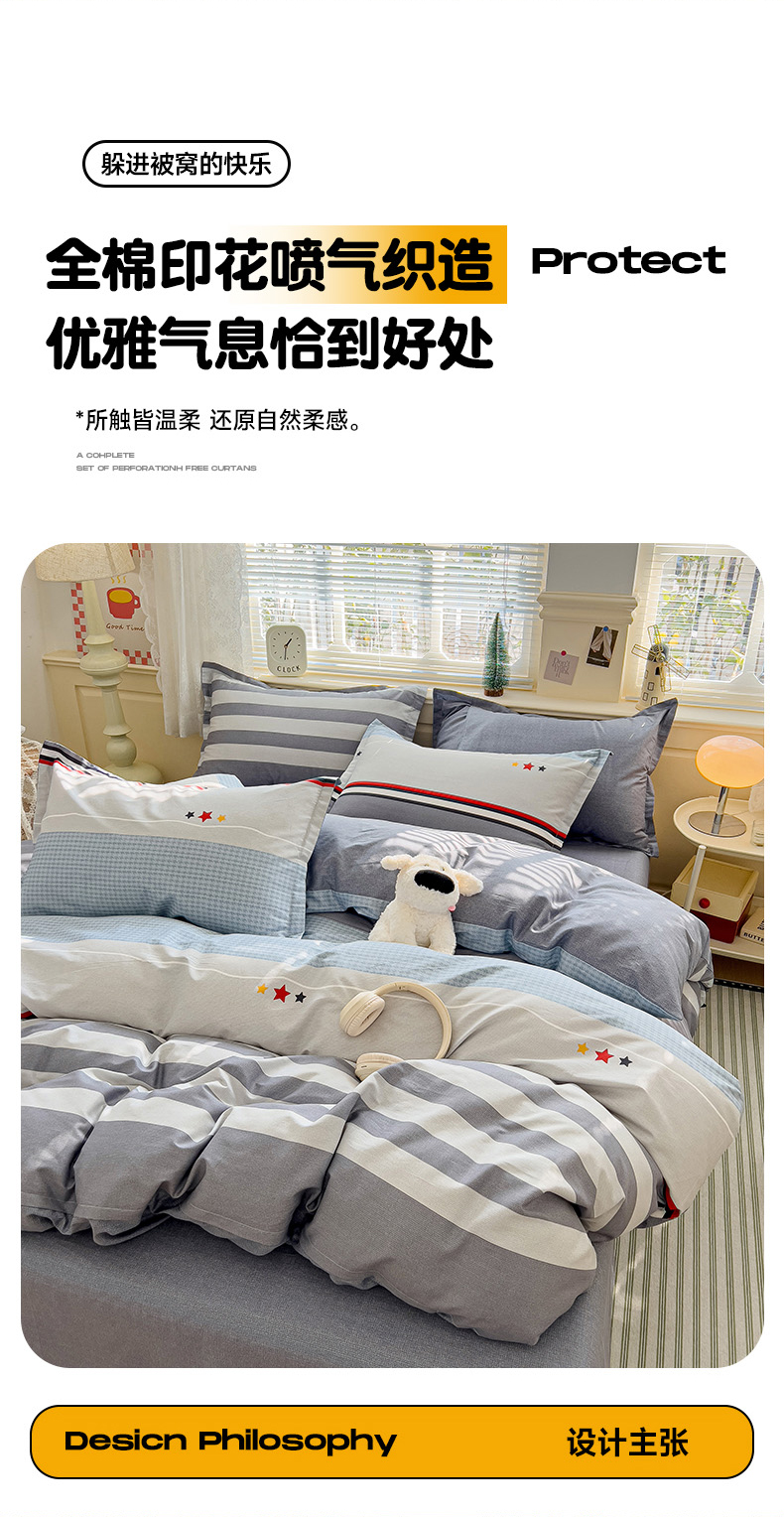当前位置: 91家纺网 > 商品网购 > 床品套件 > 四件套 > 全棉普通四件套 > 卡普家居 纯棉全棉四件套13070喷气床单款床笠款三件套 沐光