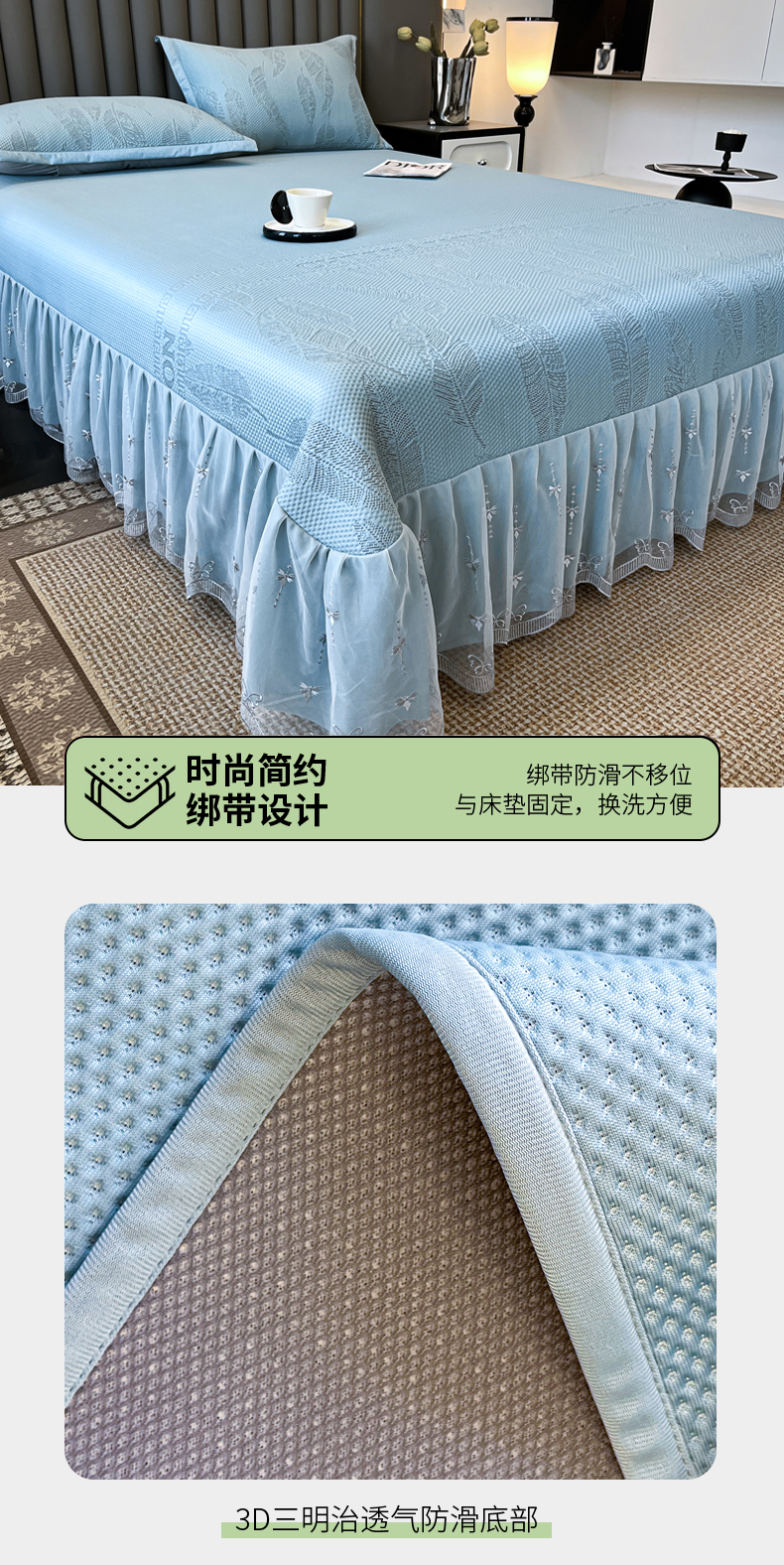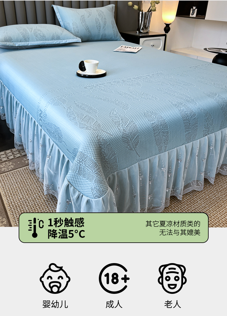 商品名称:阿牛席业 2025新款凉感床盖系列 d-知夏-蓝(床盖)