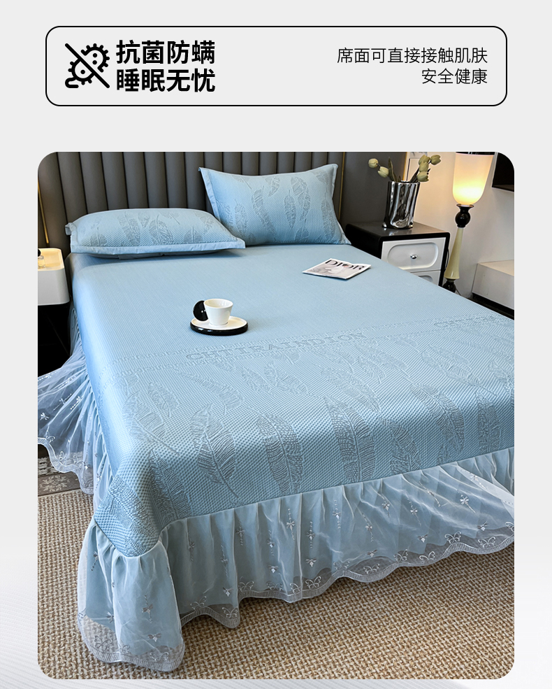 (总)阿牛席业 2025新款冰藤凉席系列冰藤绣花韵雅席,韵雅-粉,韵雅-粉床笠款,韵雅-灰,韵雅-灰床笠款,韵雅-蓝,韵雅-蓝床笠款