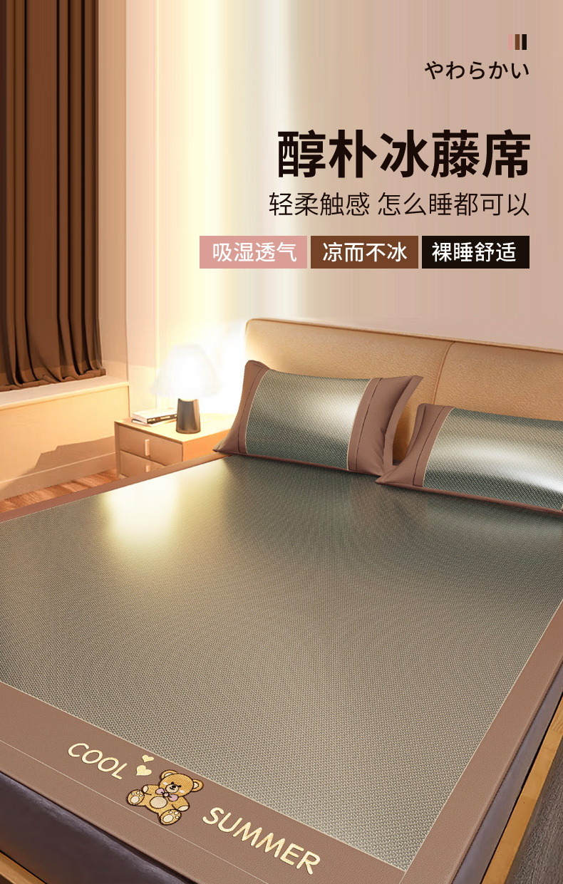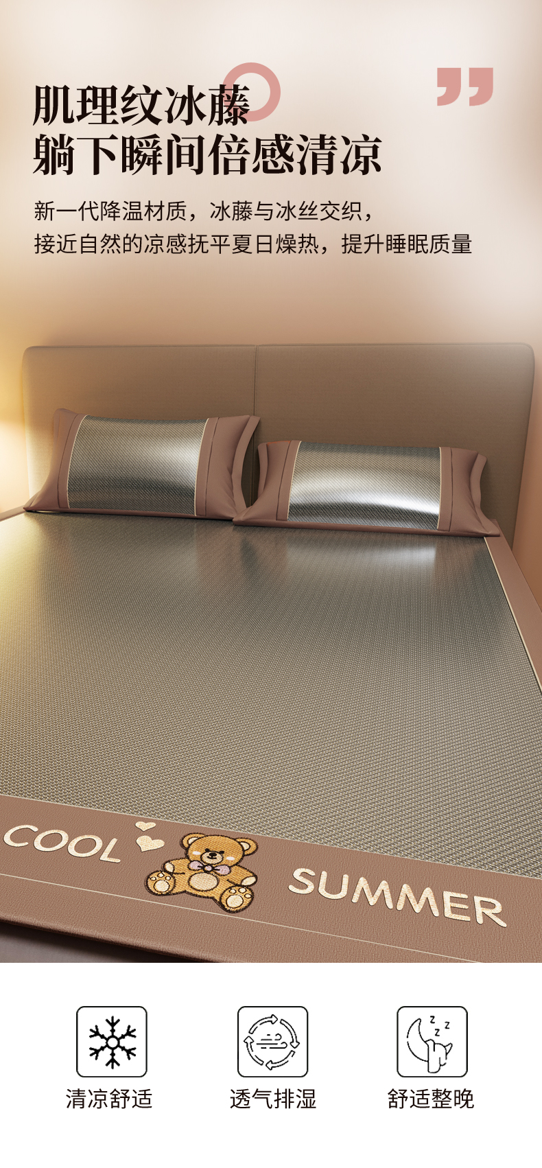 (总)阿牛席业 2025新款冰藤凉席系列冰藤完美-小熊席,完美生活-咖色,小熊条席-灰色,小熊条席-金色,小熊条席-咖色,小熊-灰床笠,小熊-金床笠,小熊-咖床笠