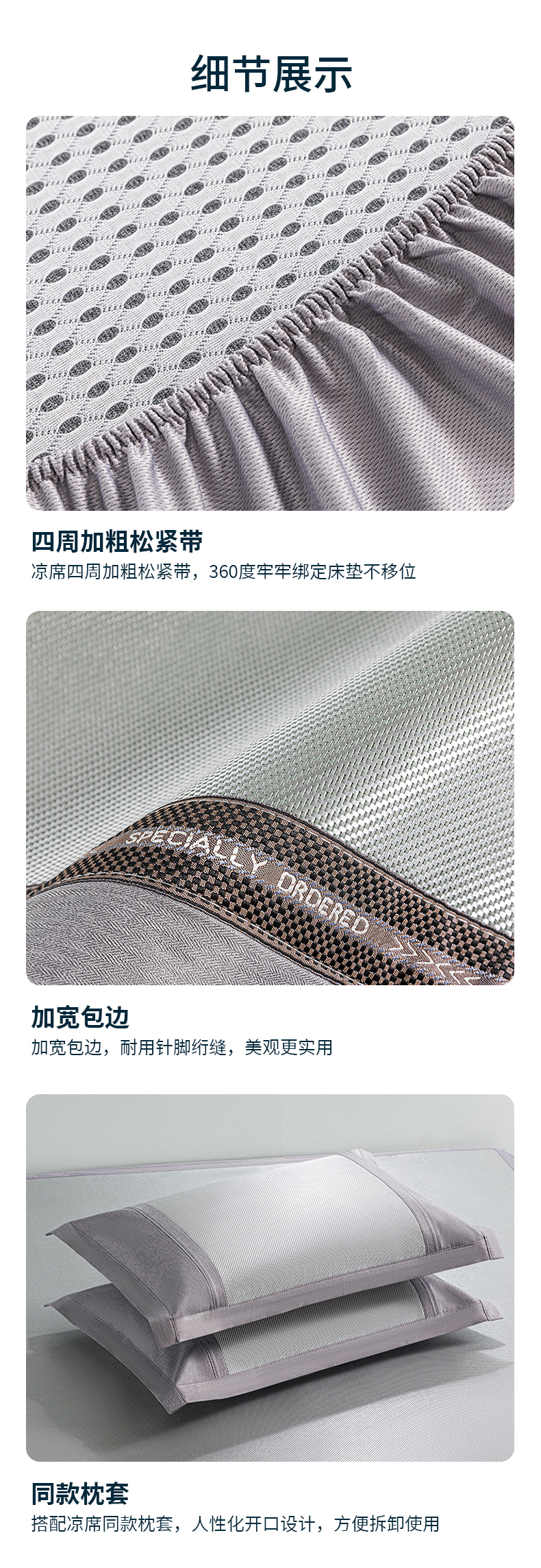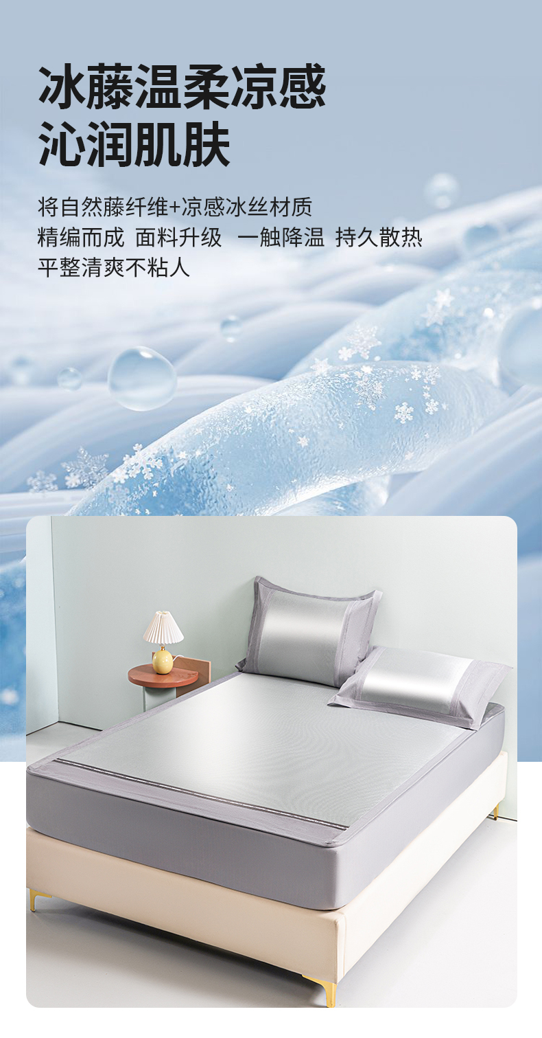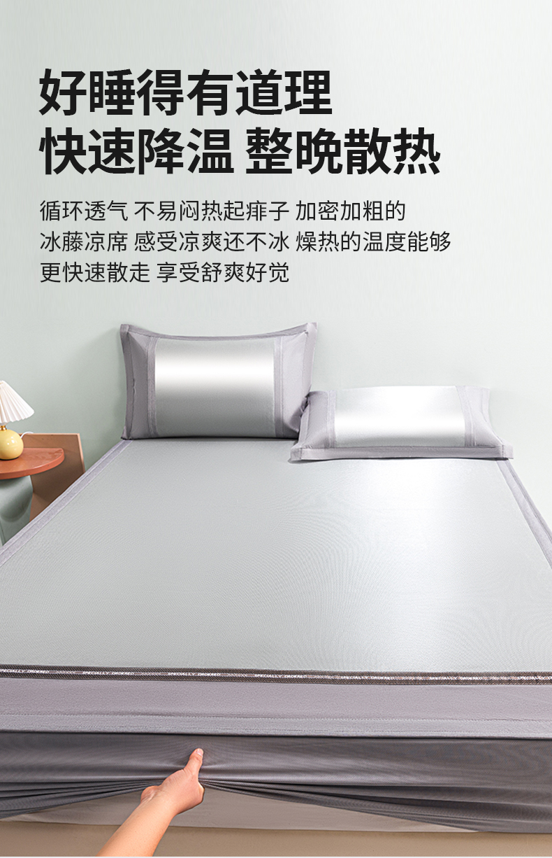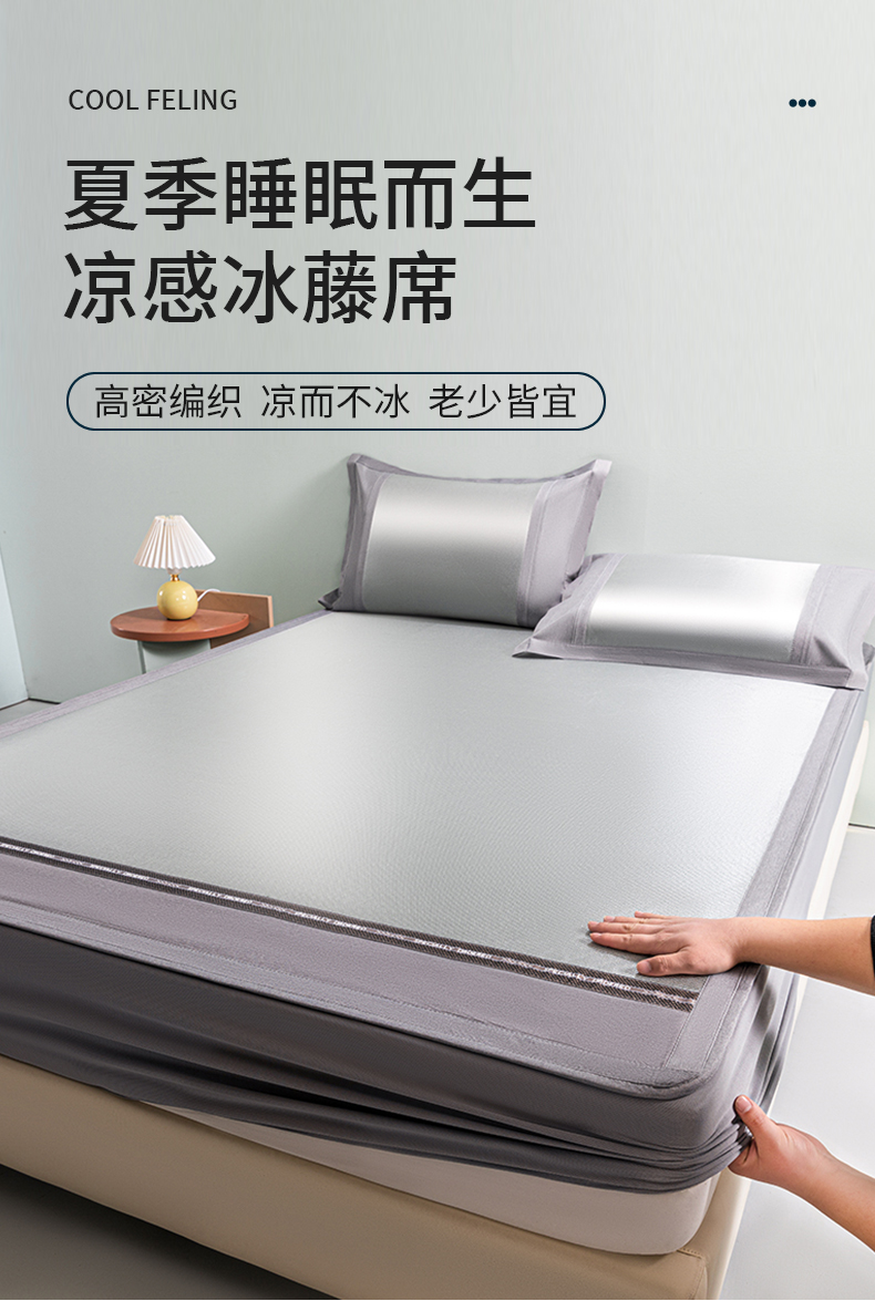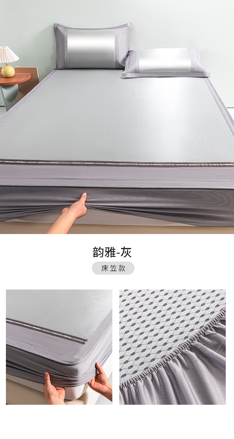 商品名称:阿牛席业 2025新款冰藤凉席系列冰藤绣花韵雅席 韵雅-灰床笠款