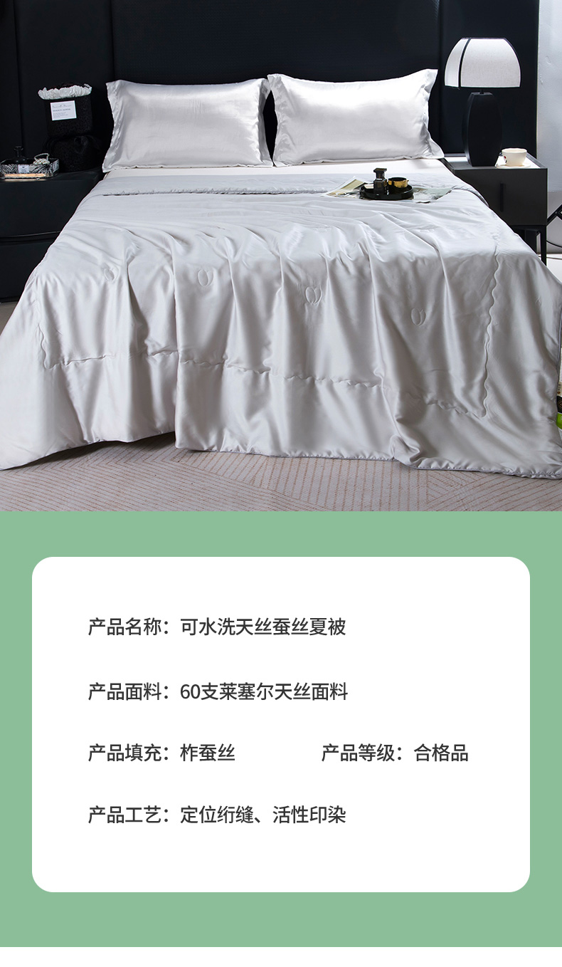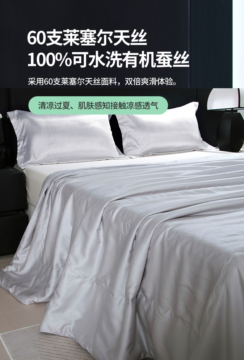 商品名称:鑫田家纺 60s莱赛尔天丝夏被100%蚕丝被夏凉被空调被可水洗蚕丝被 灰色