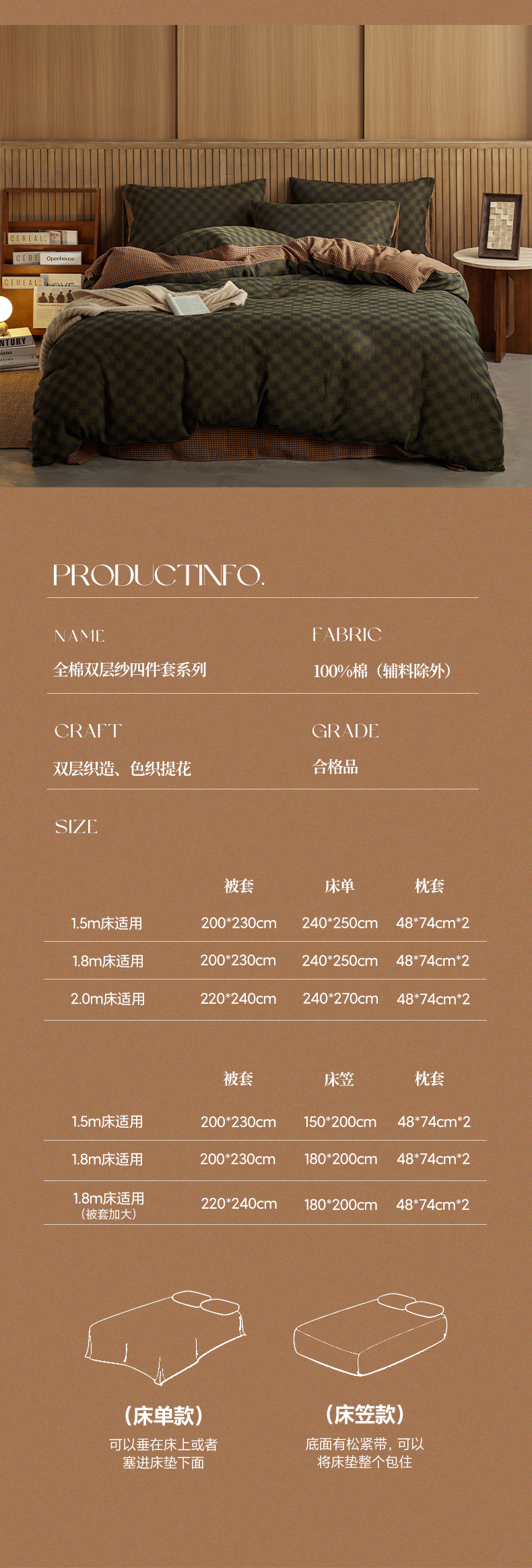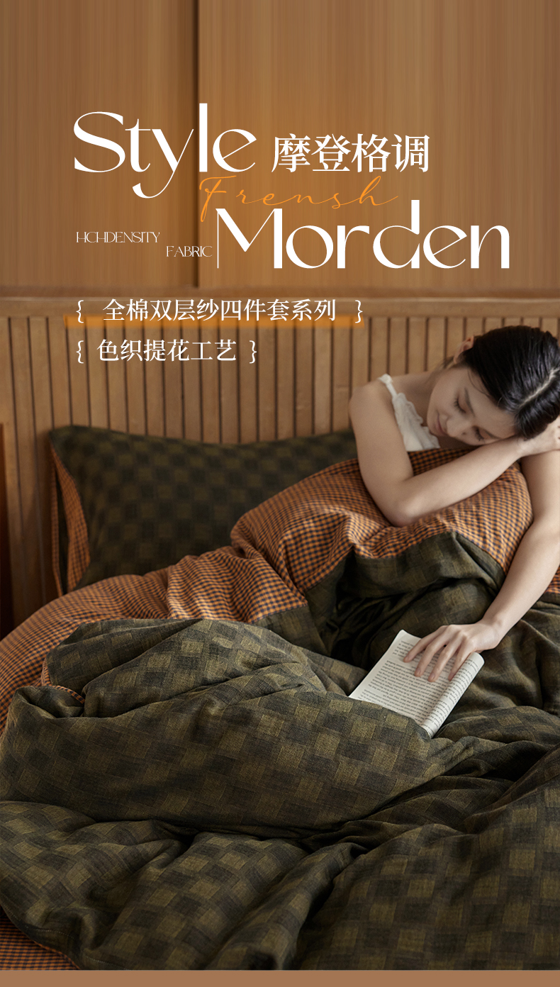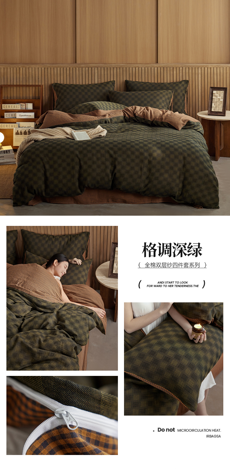 当前位置: 91家纺网 > 商品网购 > 床品套件 > 四件套 > 双层纱四件套 > 艾咪-Amy ntmy 2025新款复古格调全棉双层纱提花四件套 格调深绿