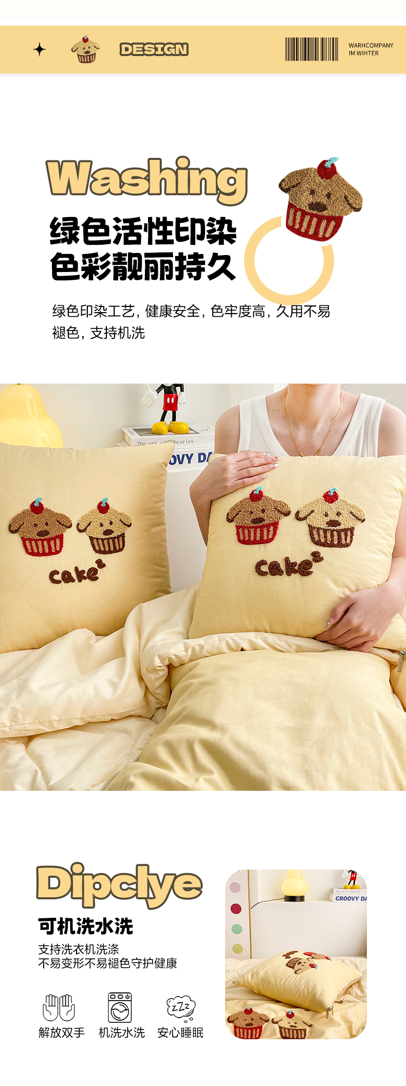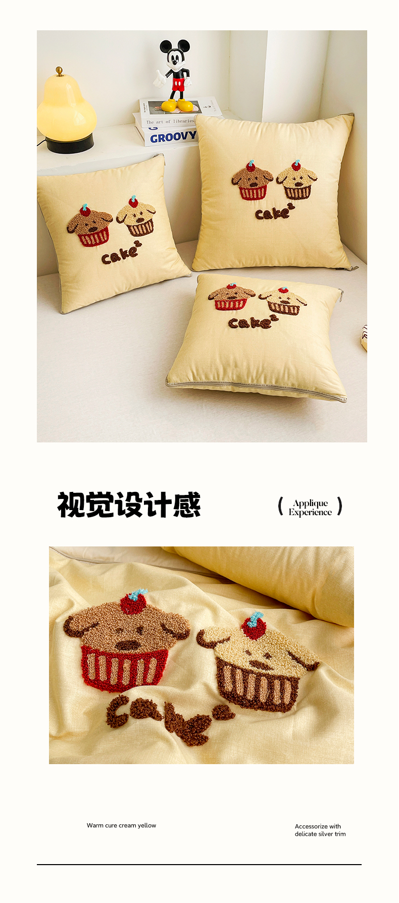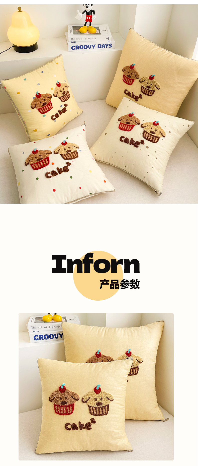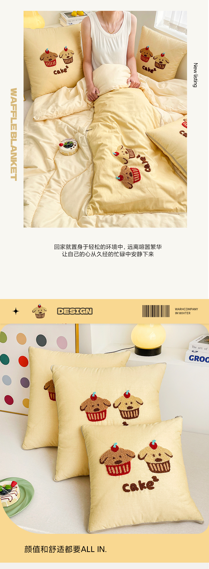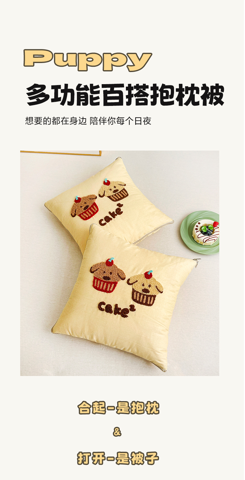 商品名称:番茄+ 2025新款全棉13370蛋糕小狗毛巾绣抱枕被 蛋糕狗—奶油黄