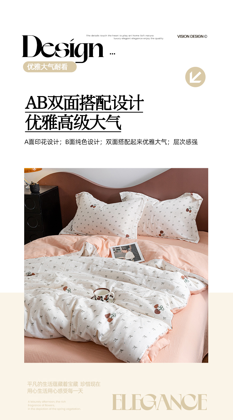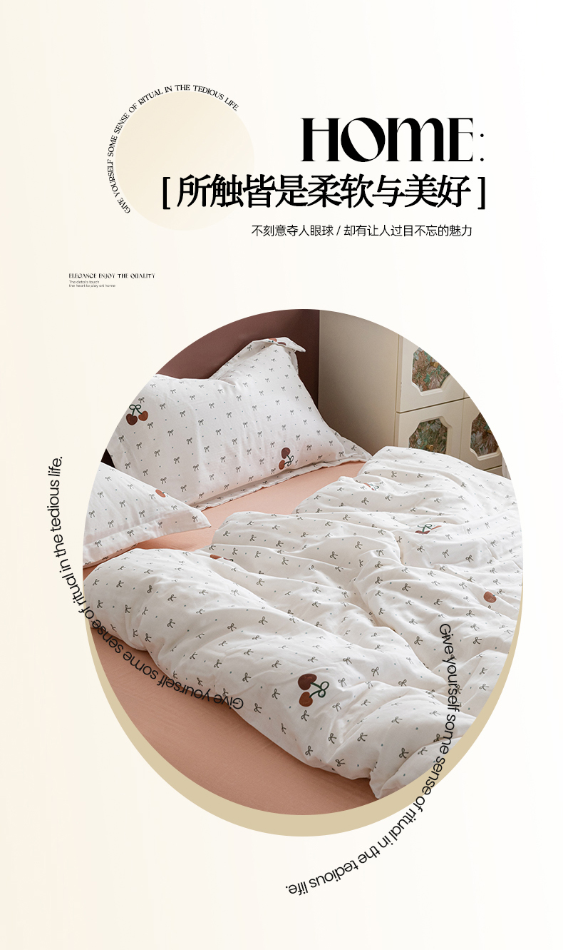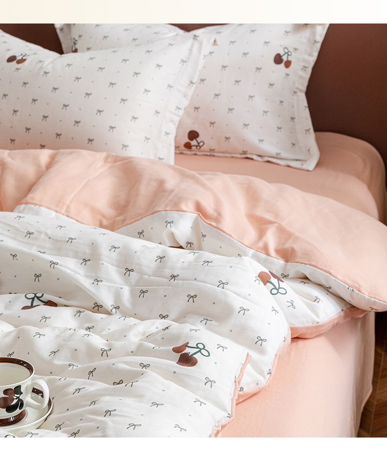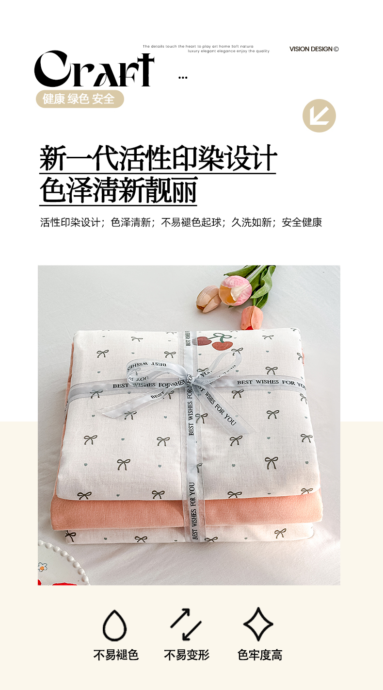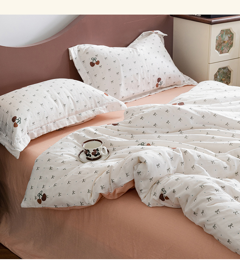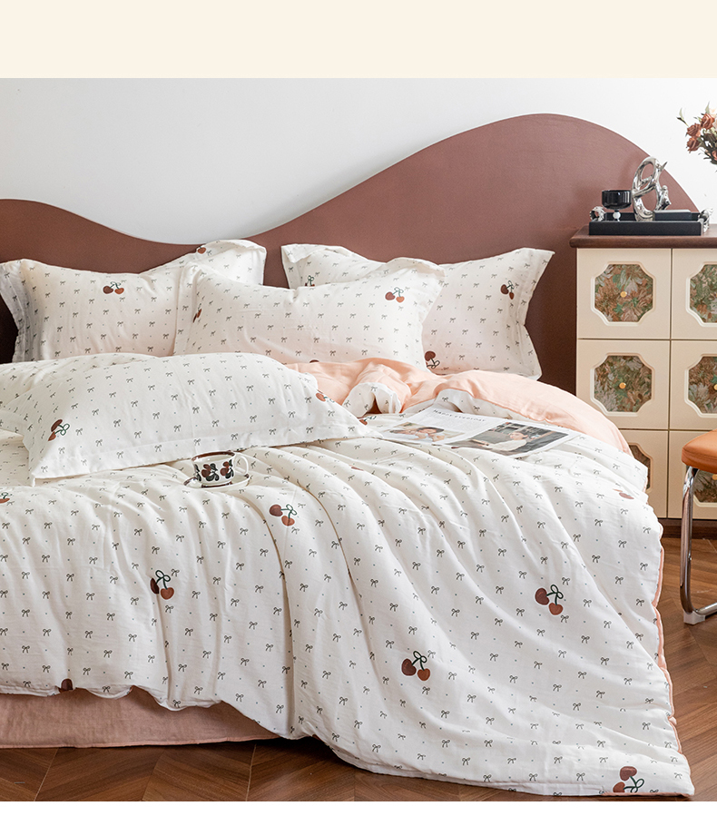 当前位置: 91家纺网 > 商品网购 > 床品套件 > 四件套 > 全棉普通四件套 > 锦罗绣2025新款A类母婴全棉有氧印花双层纱四件套可定制任意尺寸 樱桃蝴蝶结
