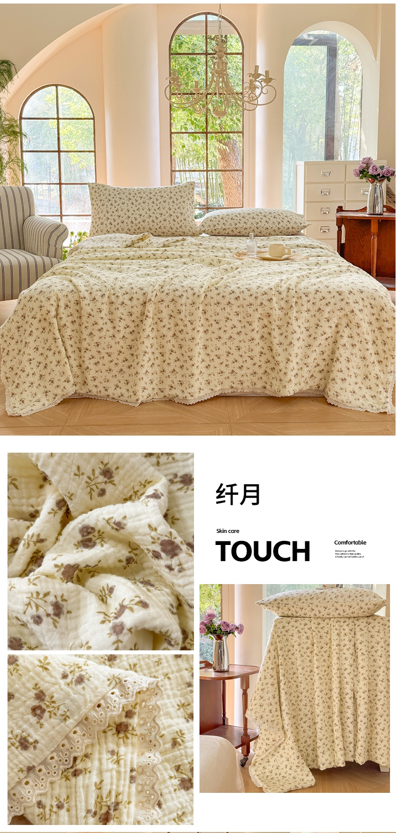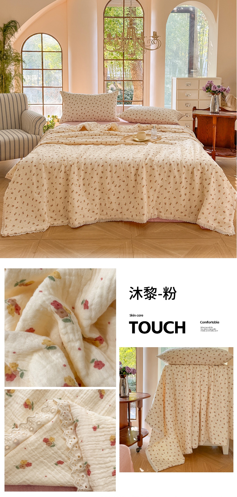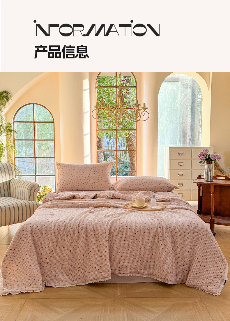 商品名称:木楌家居2025新款全棉皱皱纱花边款大豆夏被 锦婳