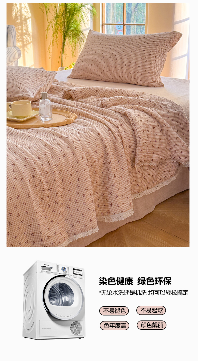 木楌 2025新款全棉A类皱皱纱印花四件套 春泥,春泥