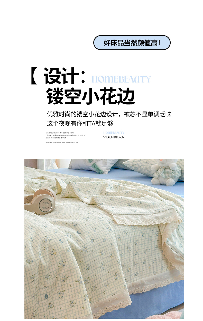 (总)木楌家居 2025新款全棉纯棉彩点皱皱纱法式大花边四件套,月光恋人