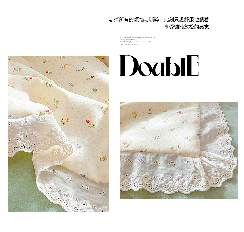 (总)木楌家居 2025新款全棉纯棉彩点皱皱纱法式大花边四件套,月光恋人